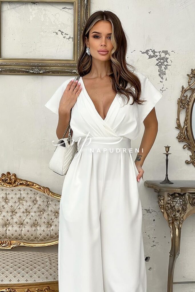 Дамски елегантен гащеризон в бял цвят – код 7005