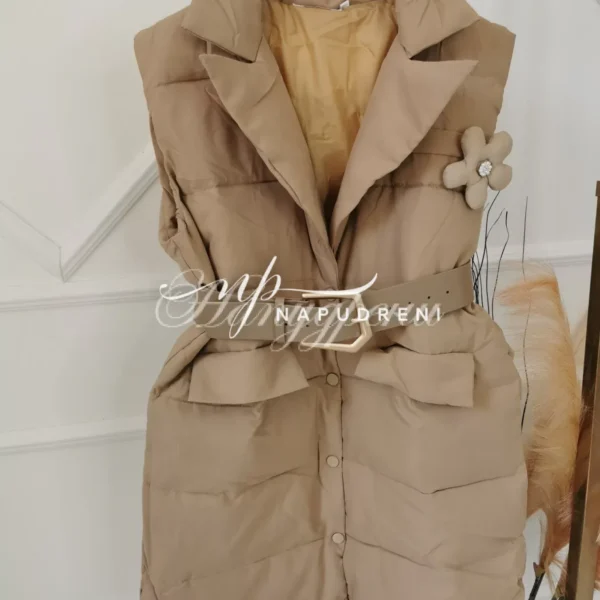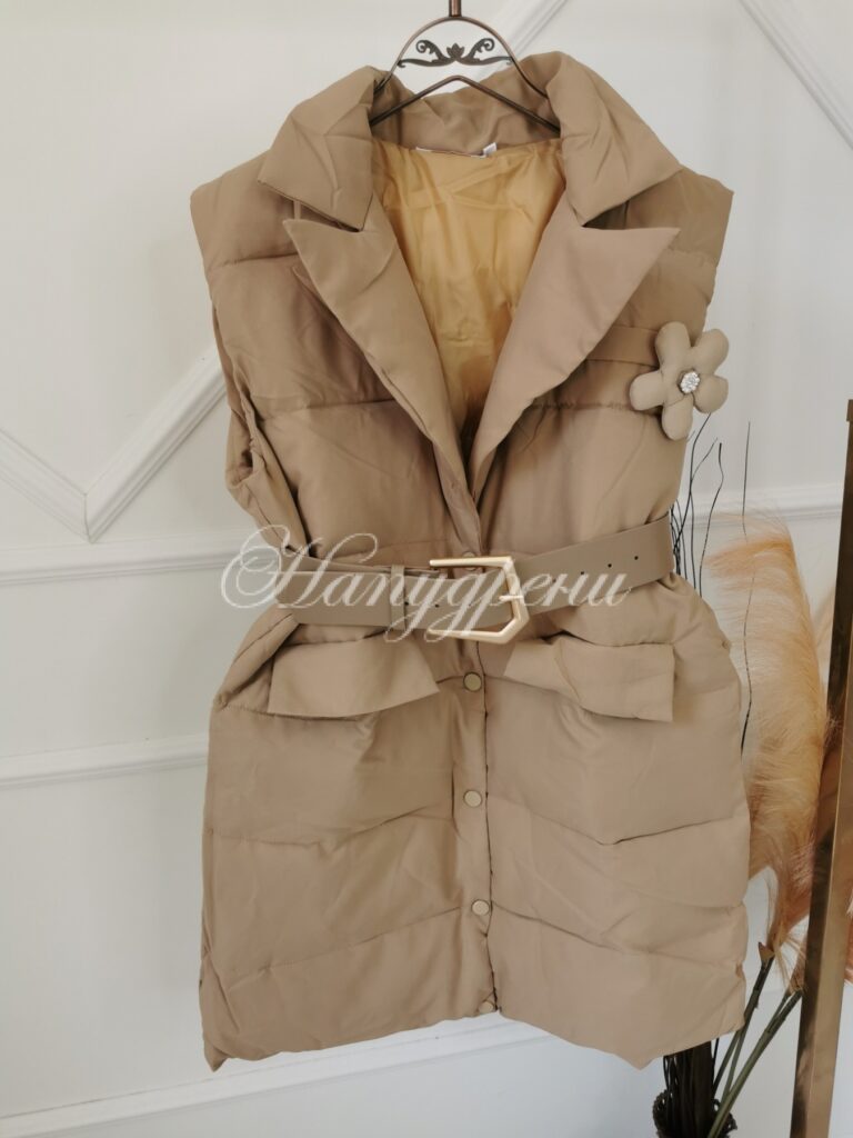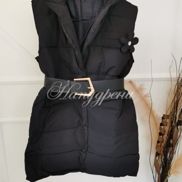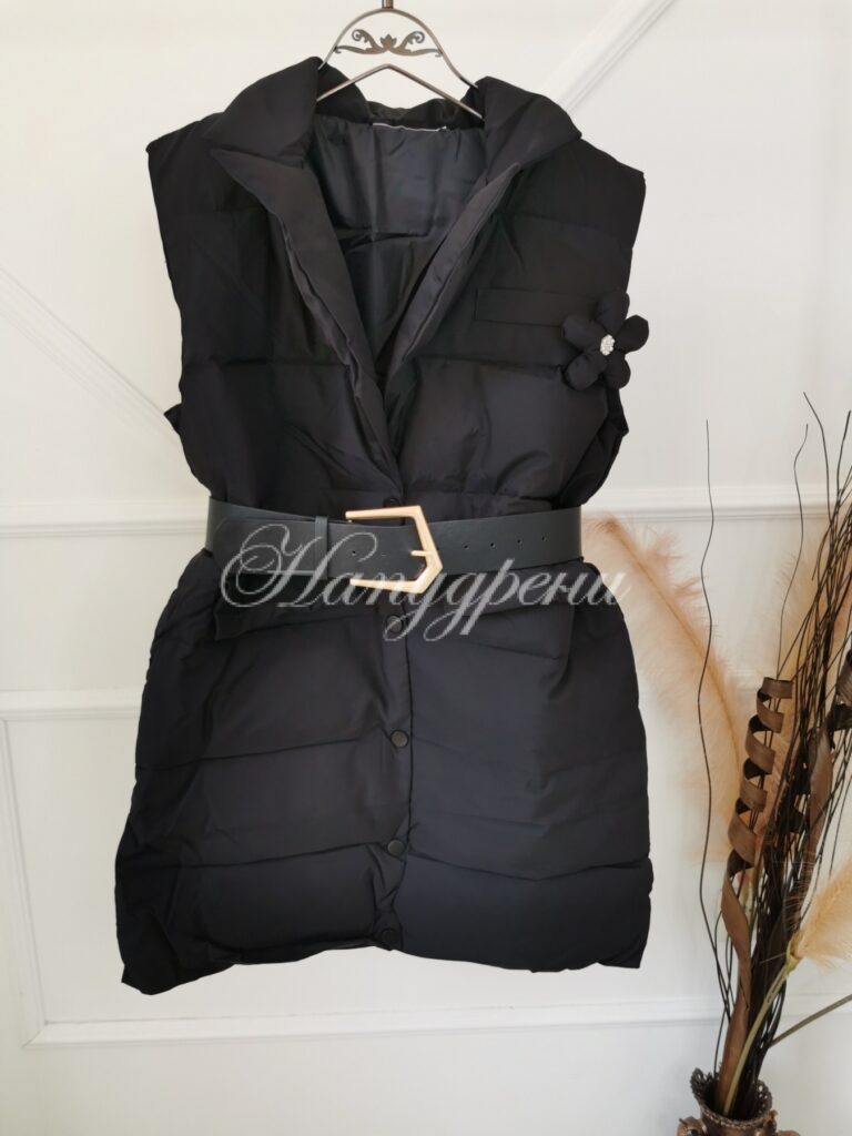 Home » Магазин » Дамски елек с коланче в черно и бежово – код 3443
