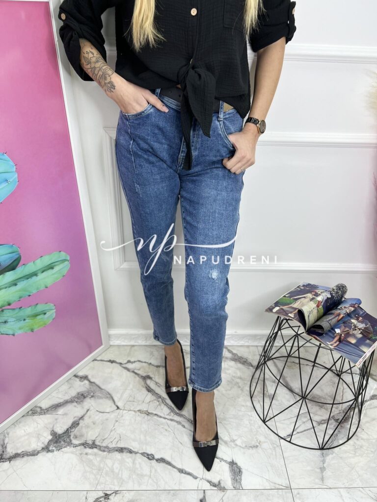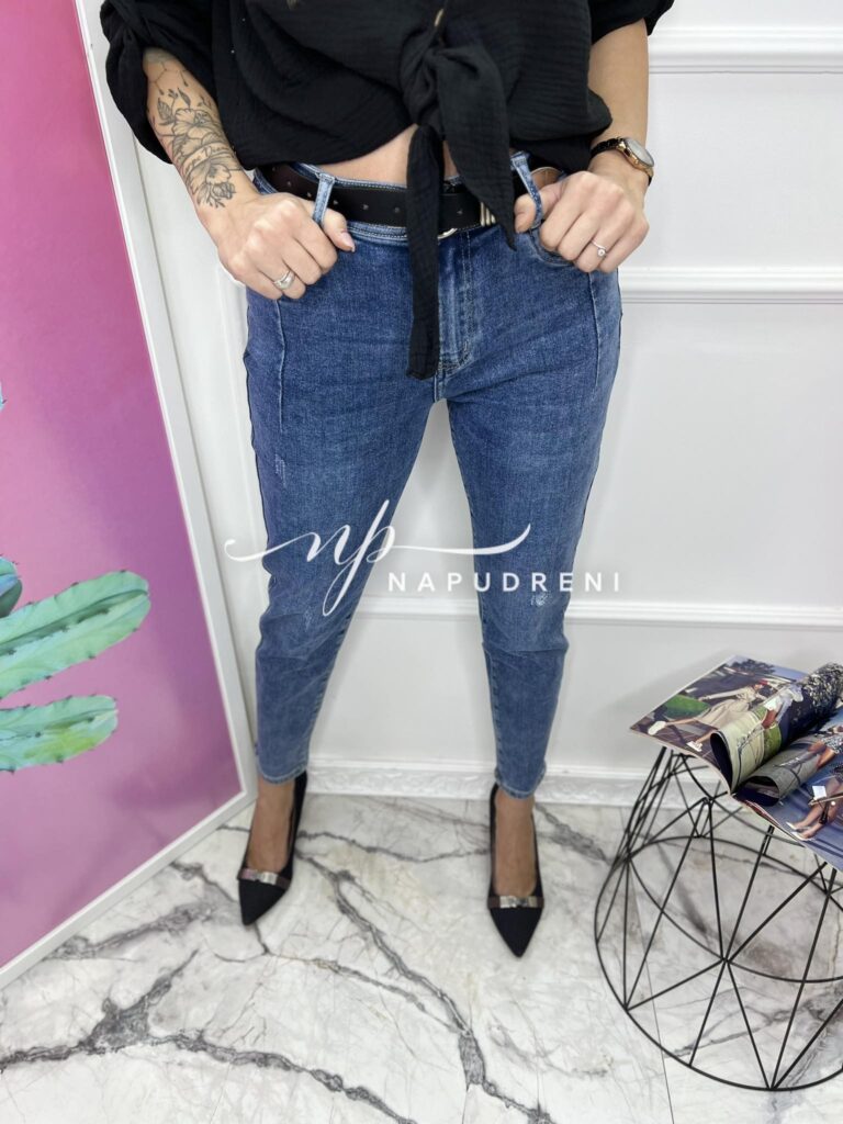 Дамски изчистени дънки в син цвят – код 6548