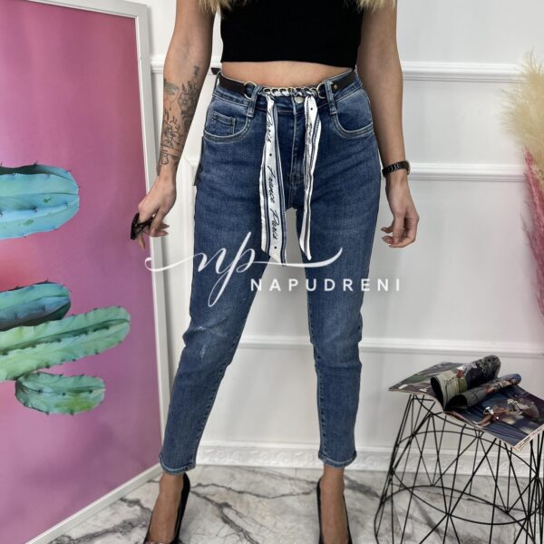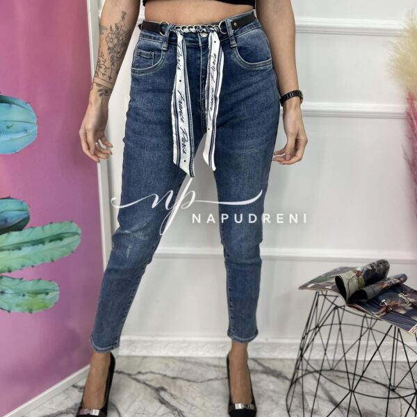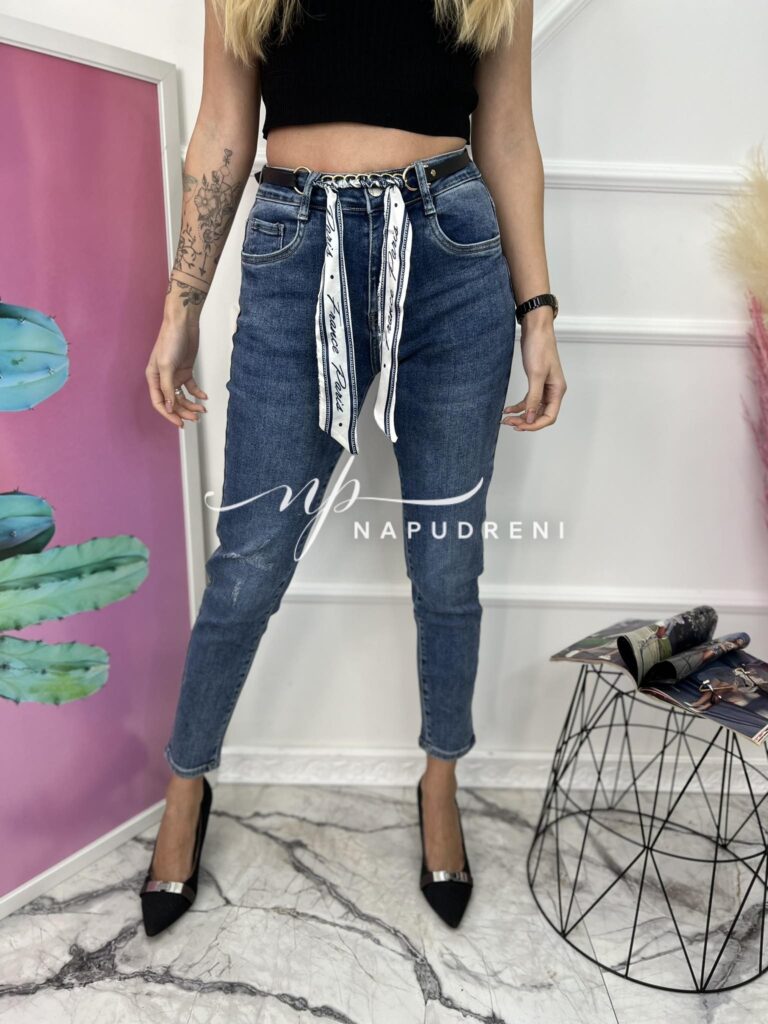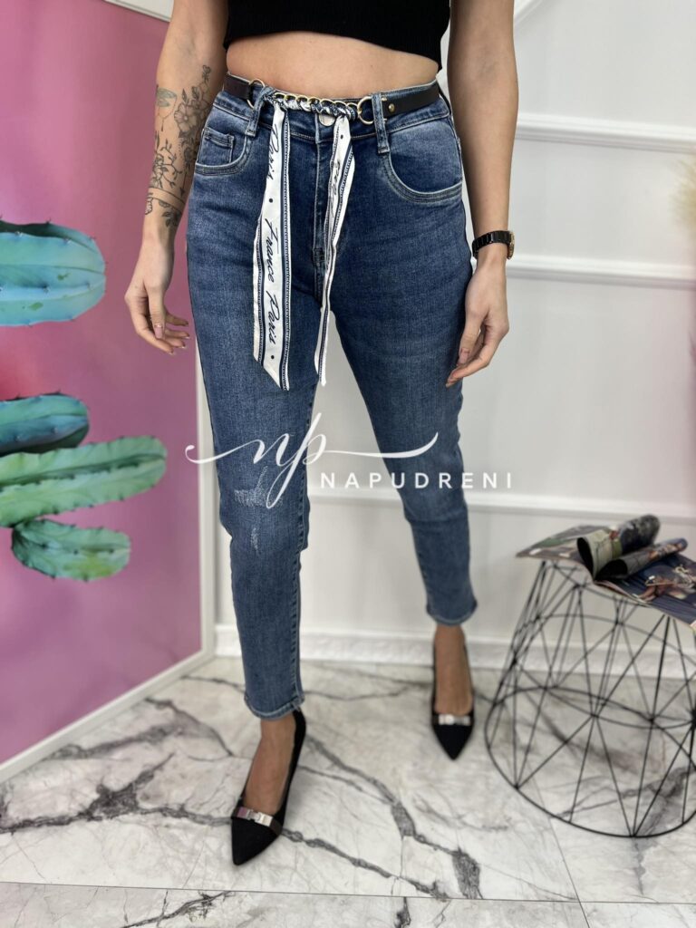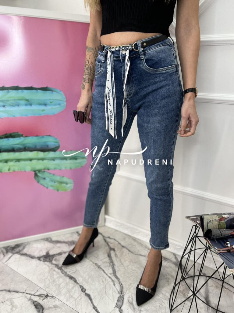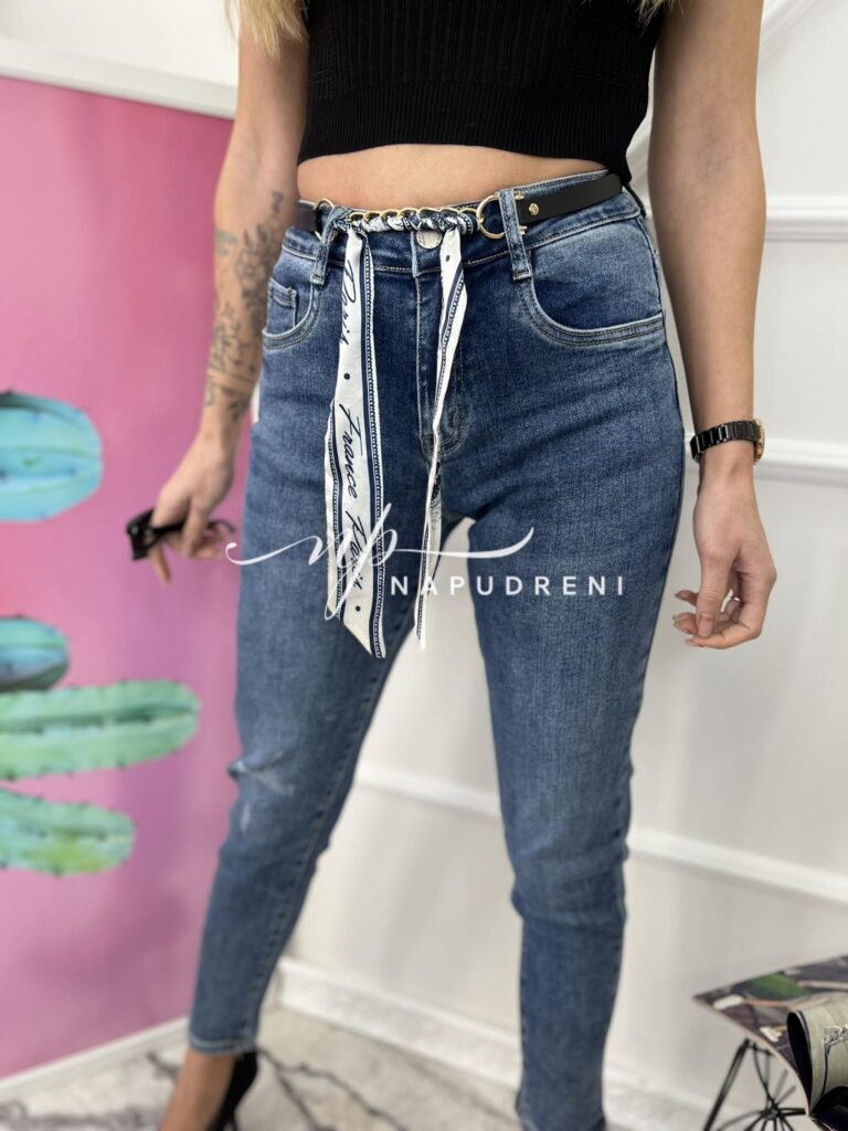Тренди дънки с ефектен колан в син цвят – код 6549