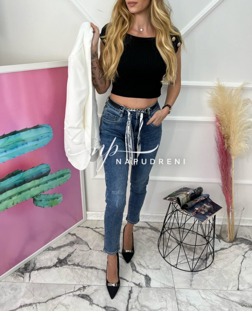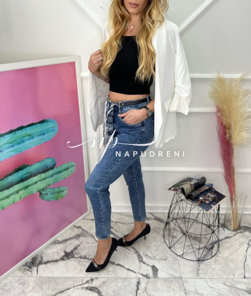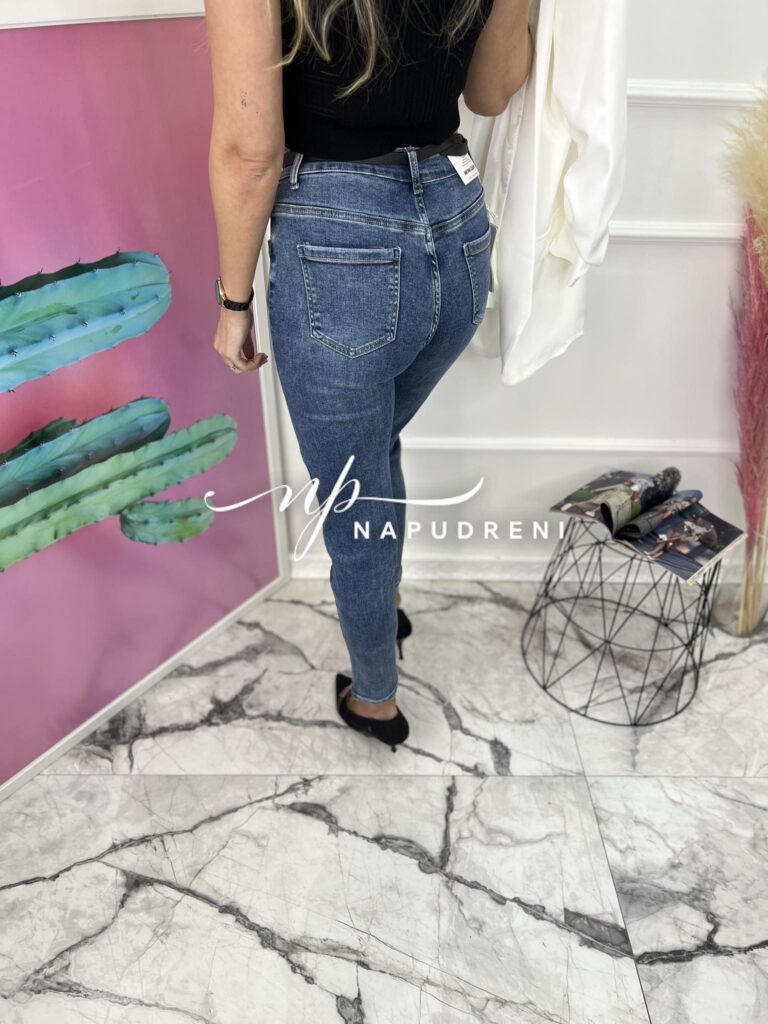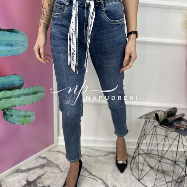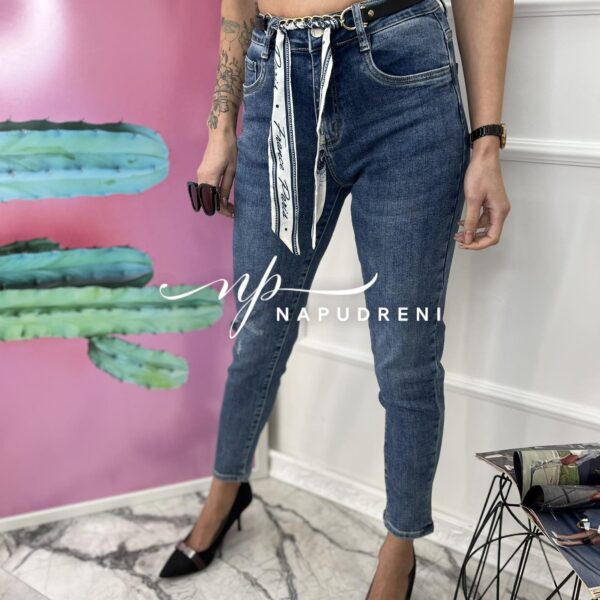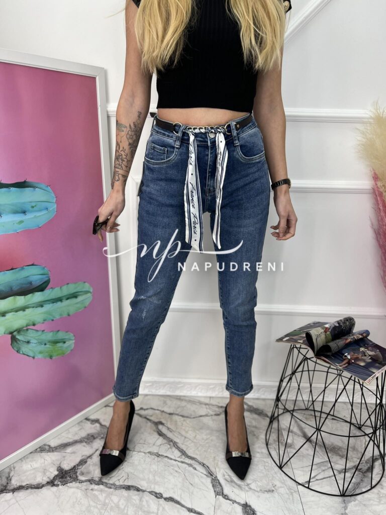 Тренди дънки с ефектен колан в син цвят – код 6549