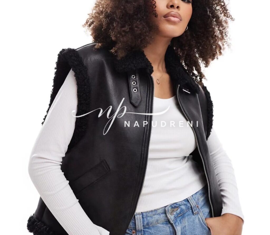 Home » Магазин » Дамски кожен елек в черен цвят – код 8144