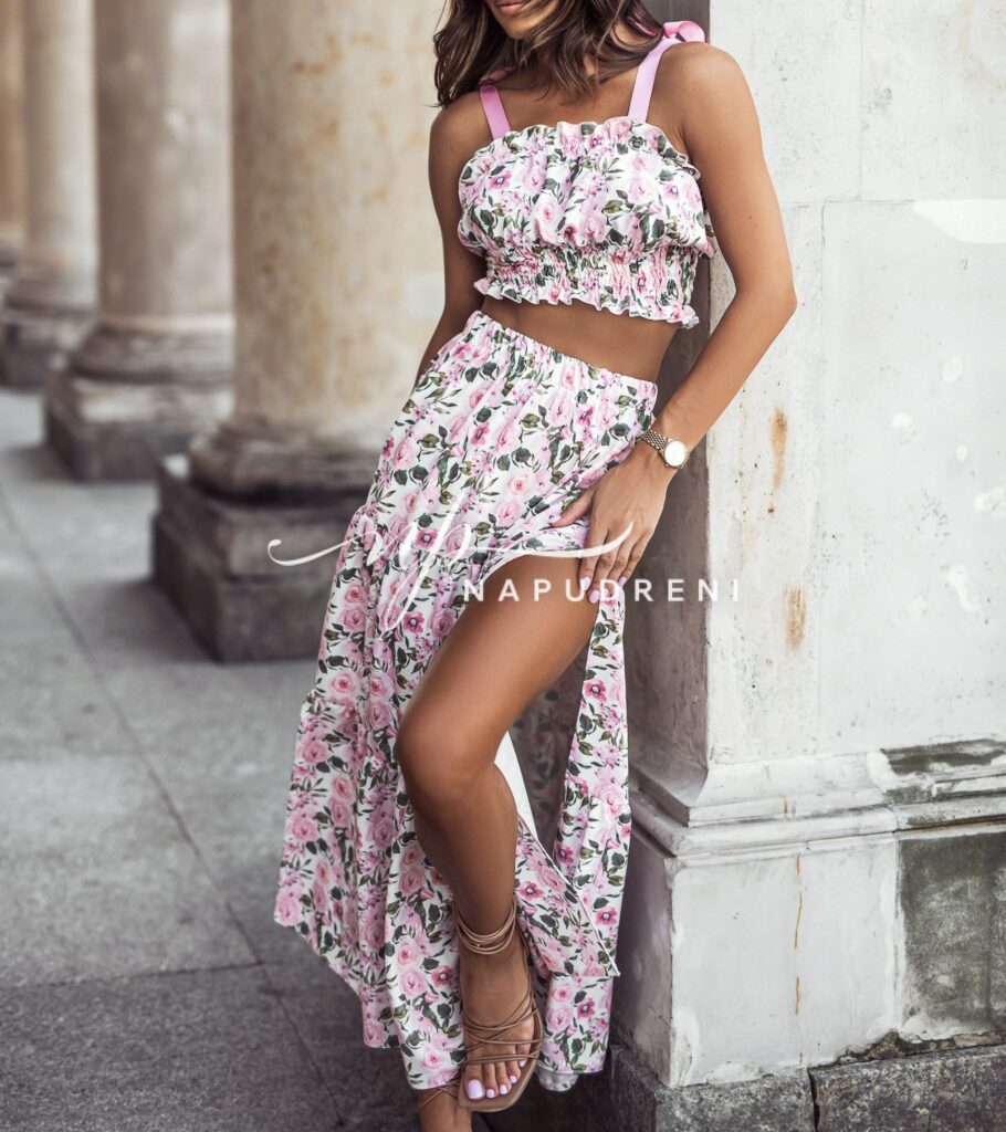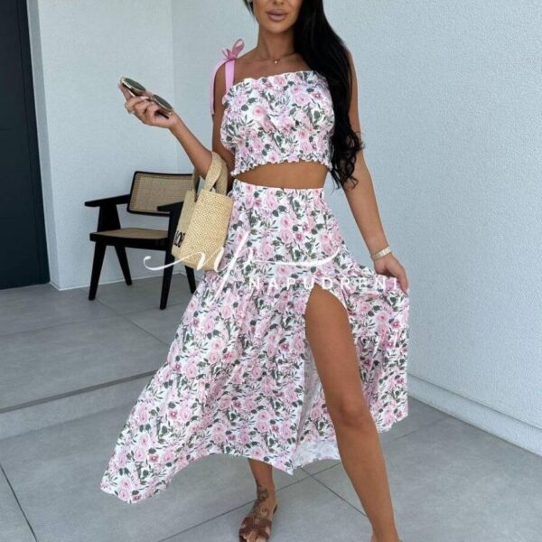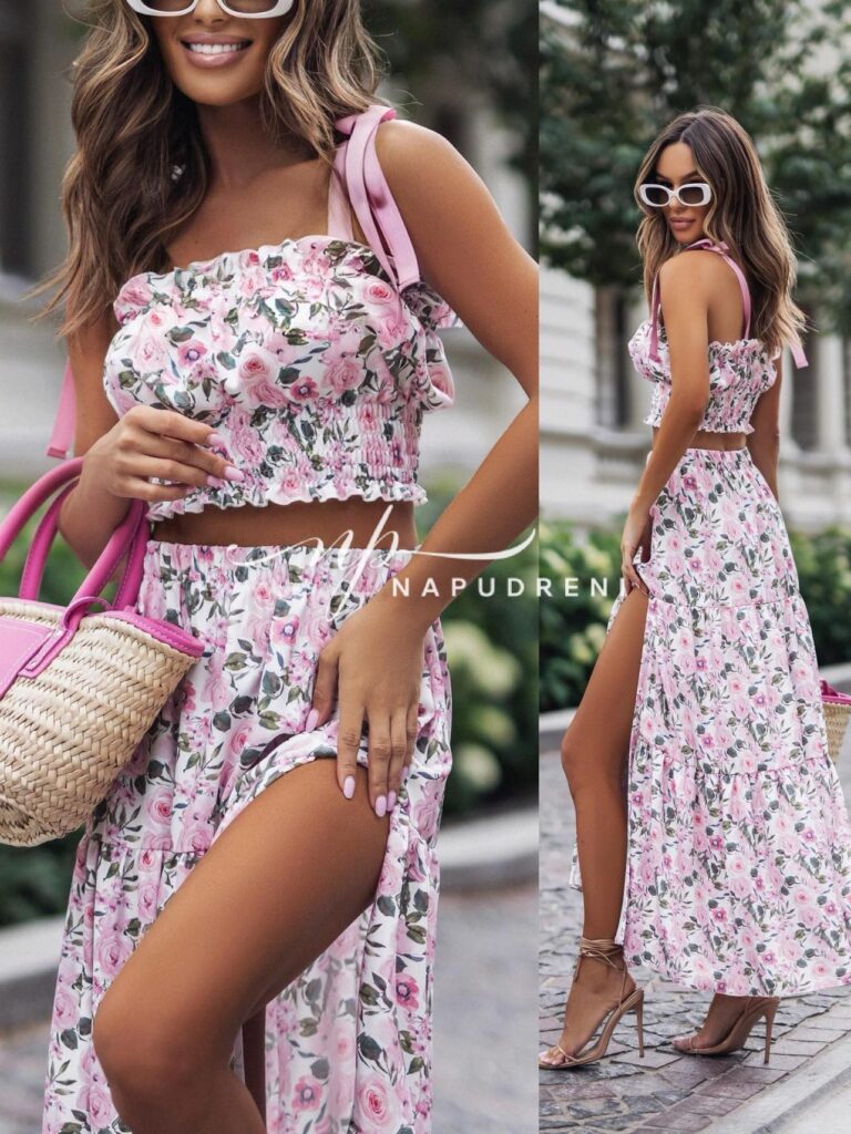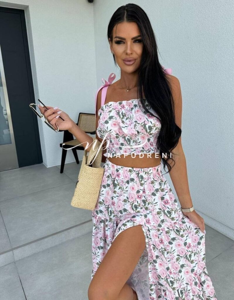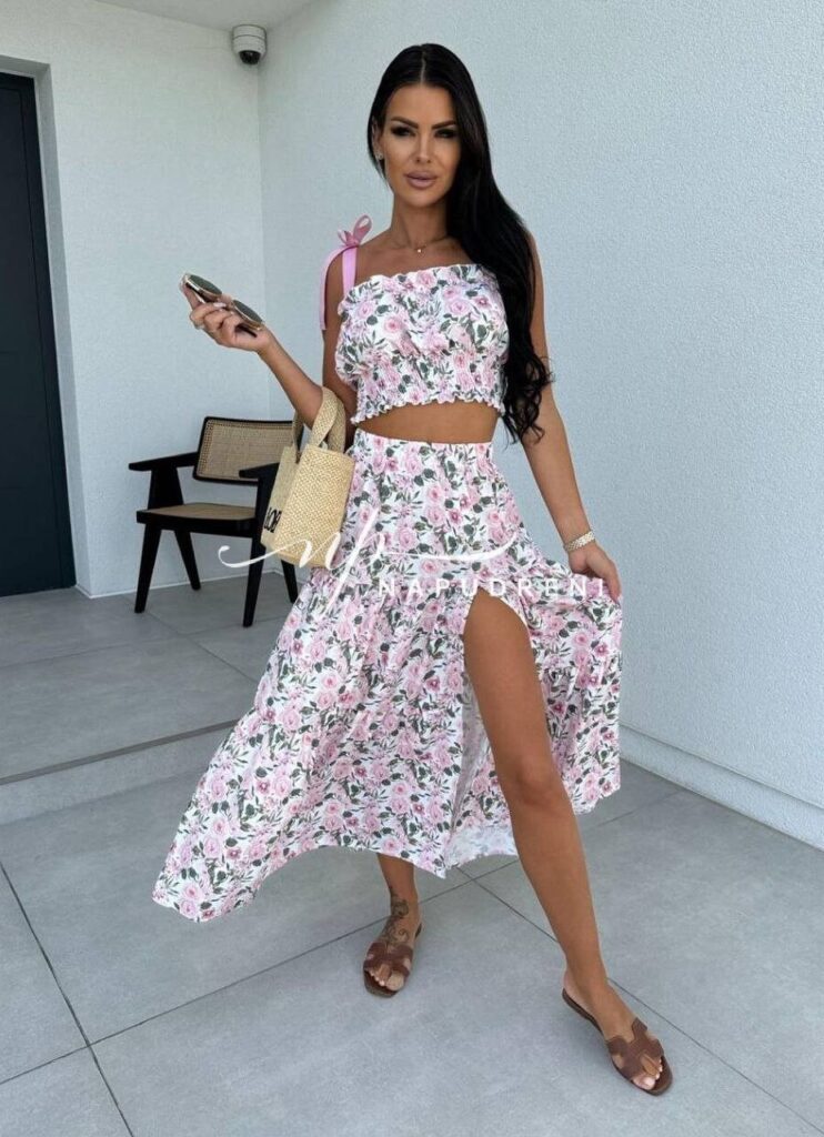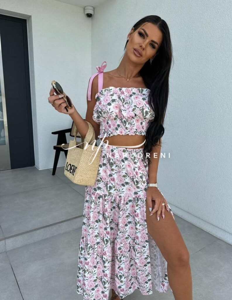 Дамски комплект „Paloma“ в бял цвят с цветя – код 7677