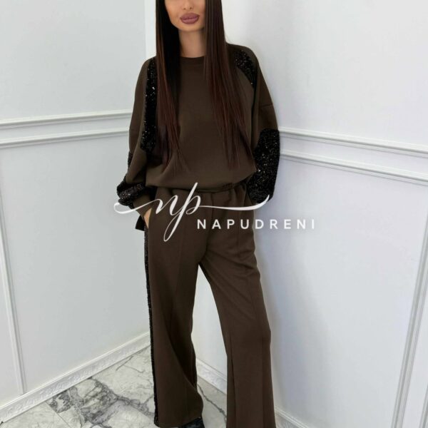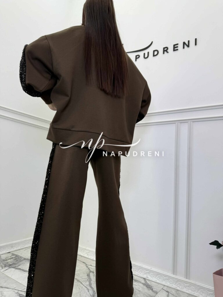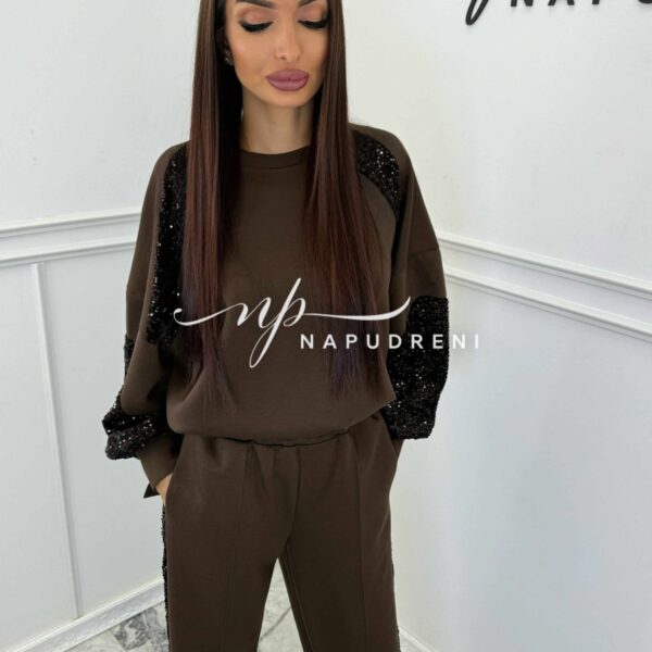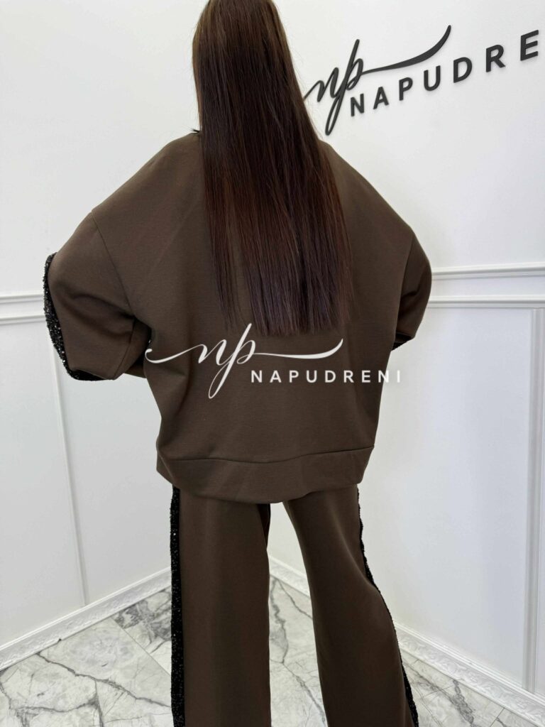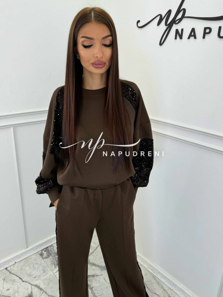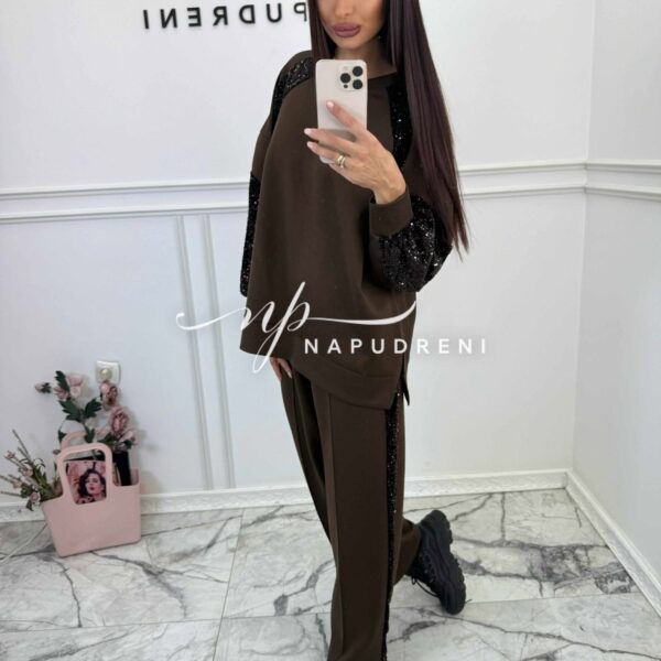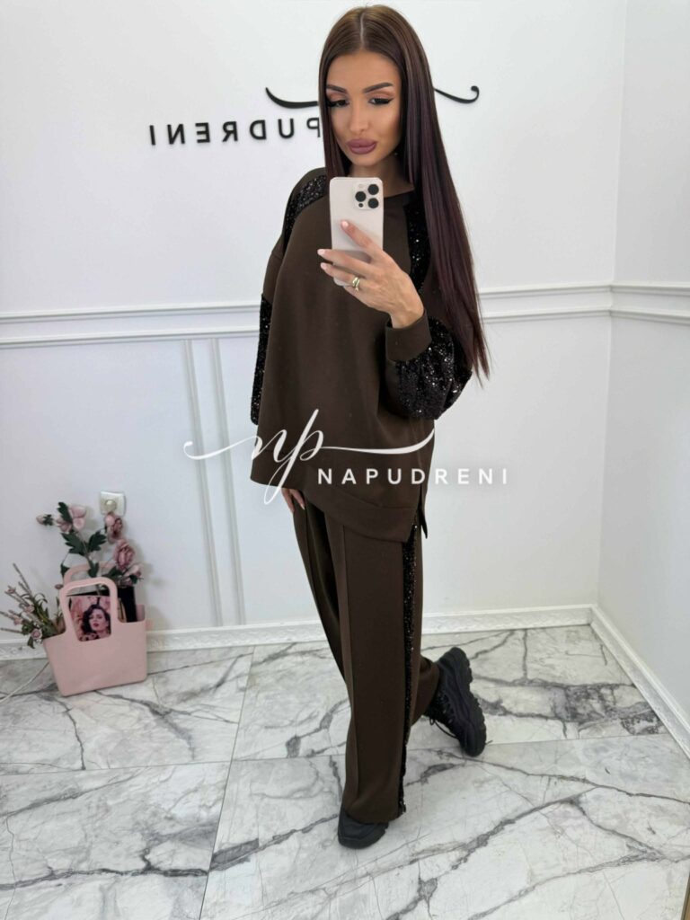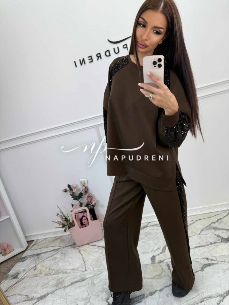 Дамски комплект с пайети в кафяв цвят – код Bi9905