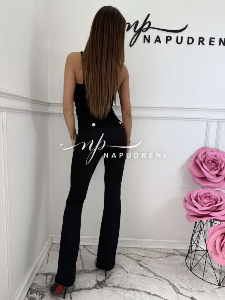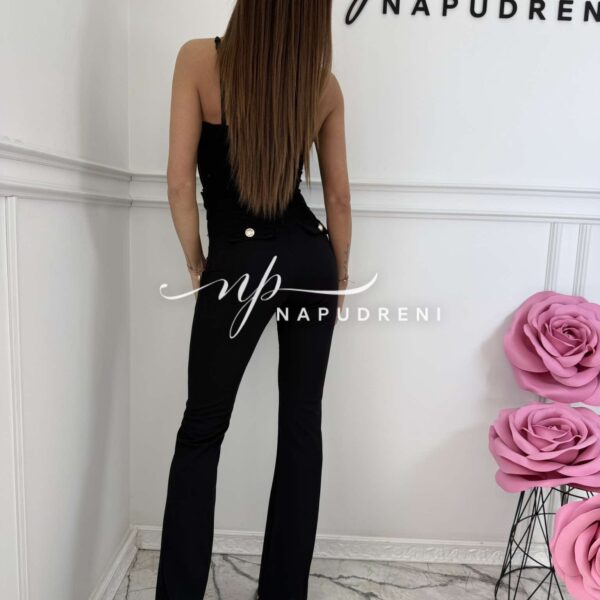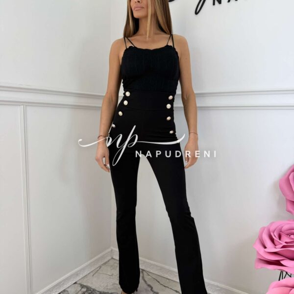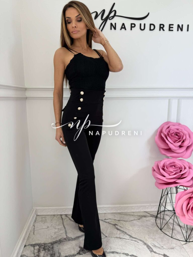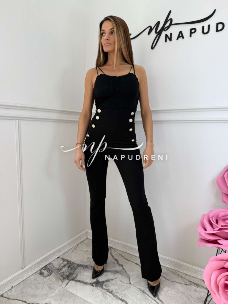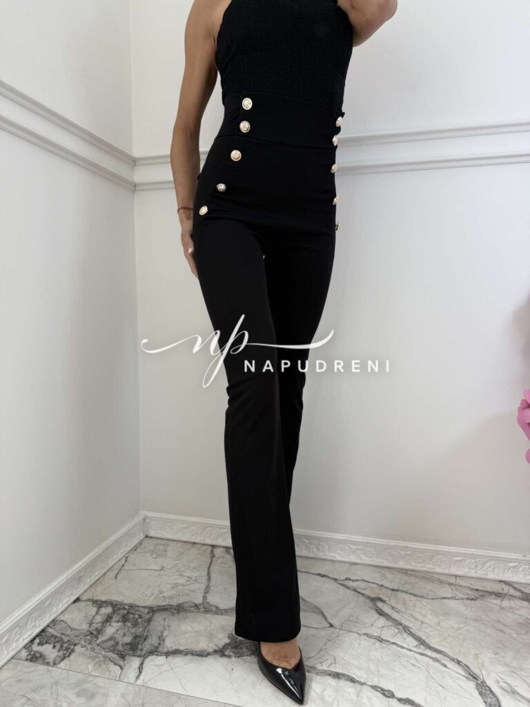 Дамски панталон с висока талия и копчета в черен цвят – код 8977