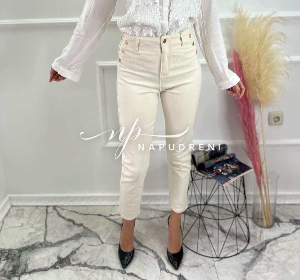 Дамски панталон със златисти копчета в бежов цвят – код 6540