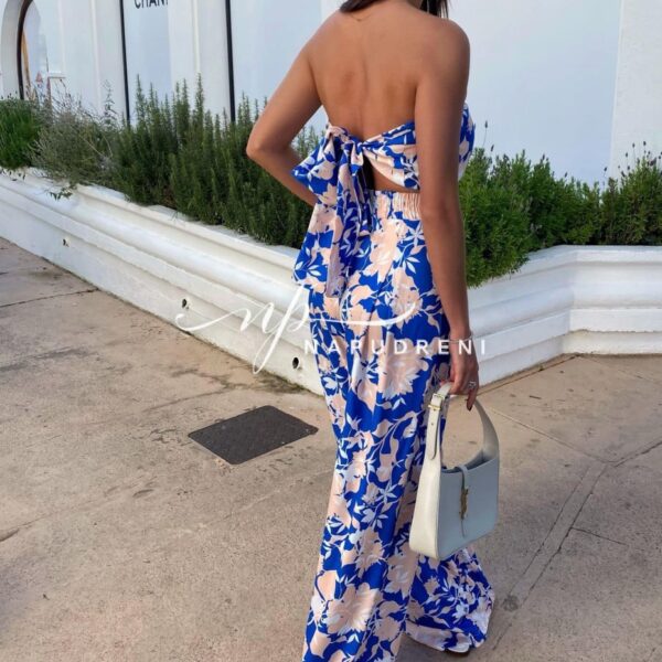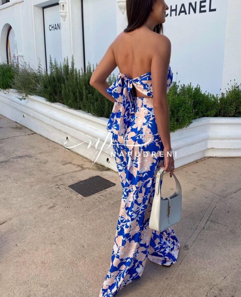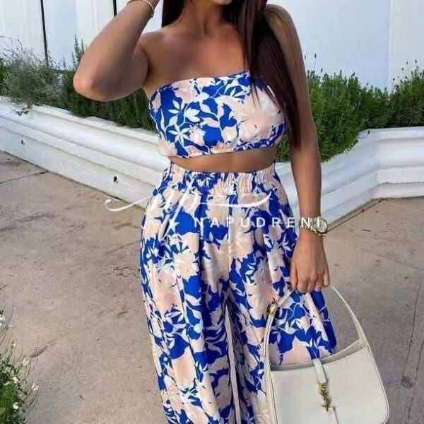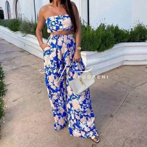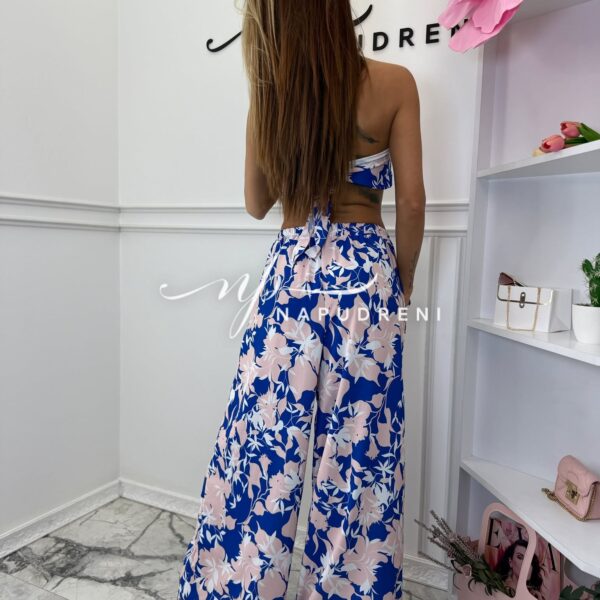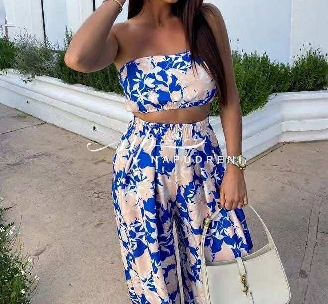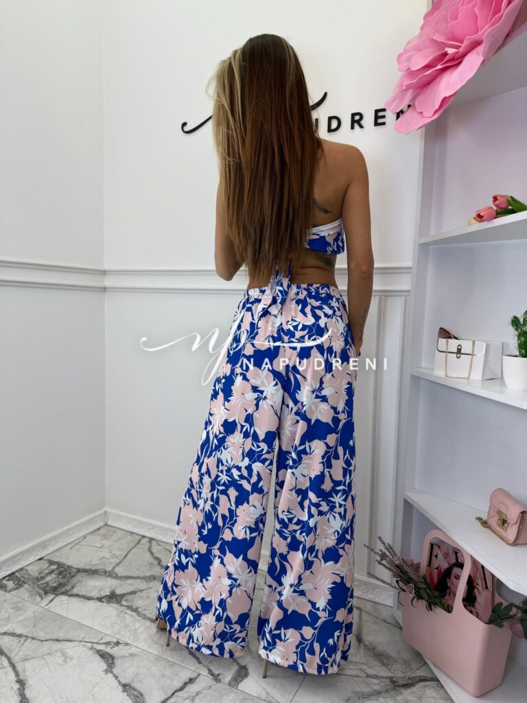Дамски сет от две части в син цвят с бежови цветя – код GT9296