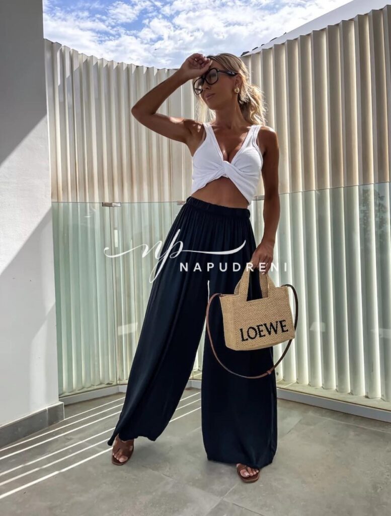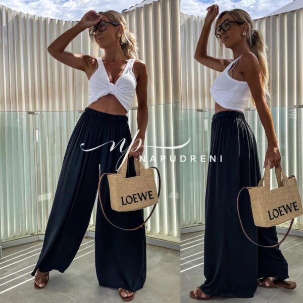 Дамски широк панталон в черен цвят – код 7549