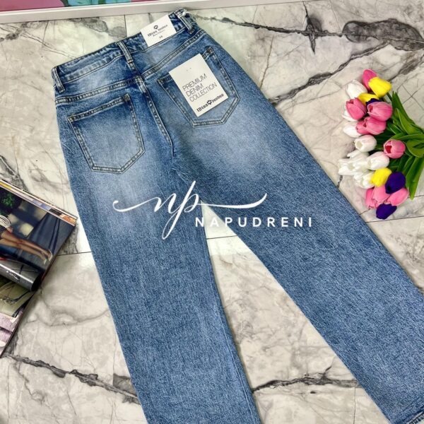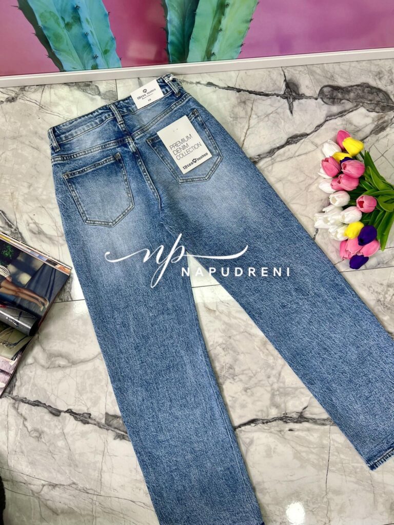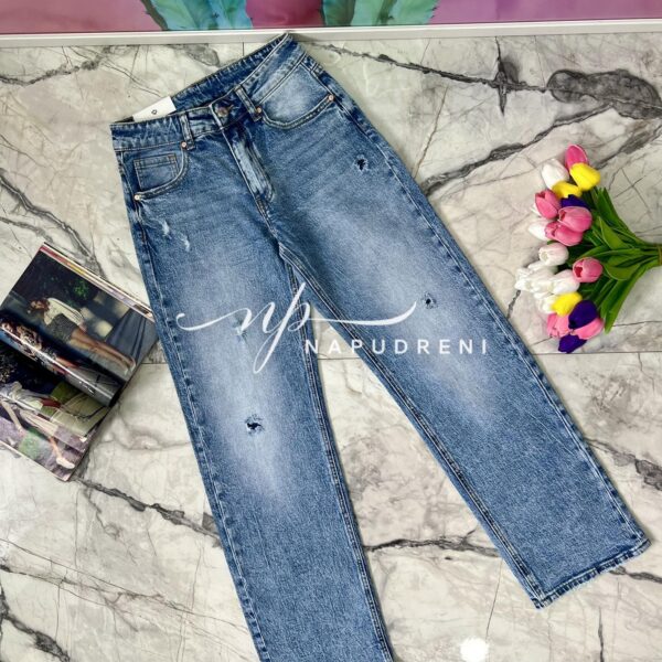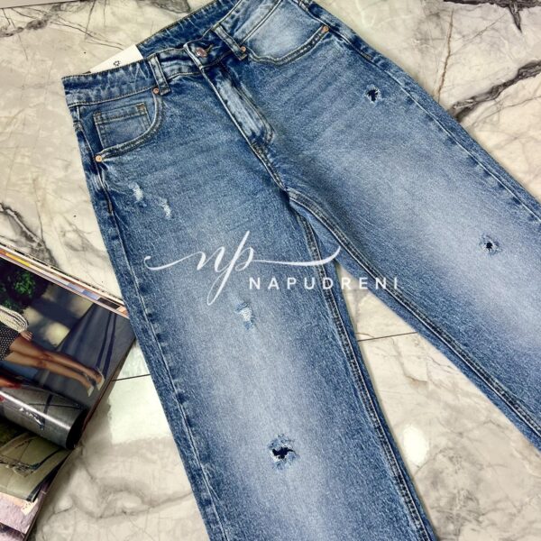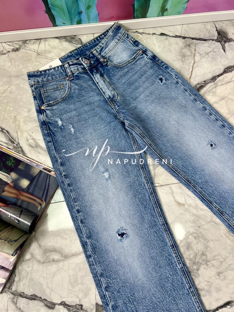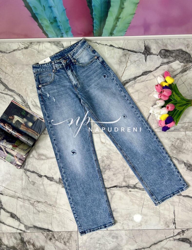 Дамски свободни дънки с кръпки син цвят – код 6996