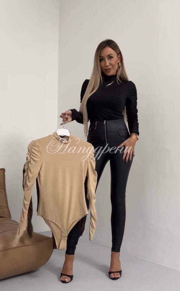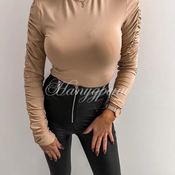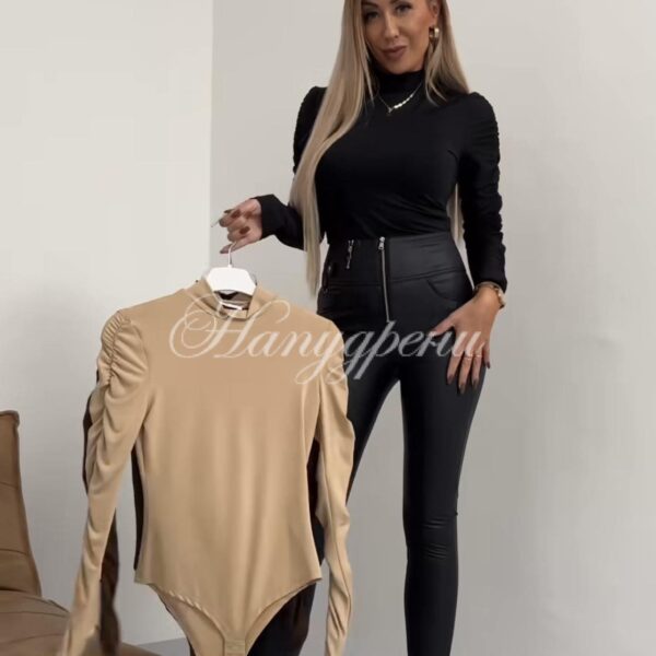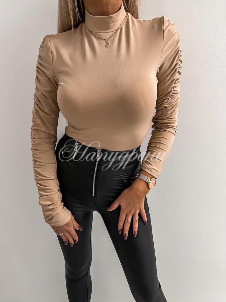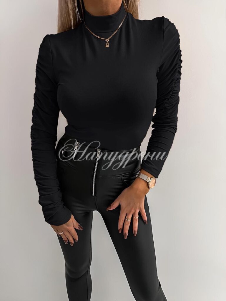 Дамско боди с набрани ръкави и изразено рамо в цвят петрол – код 6058