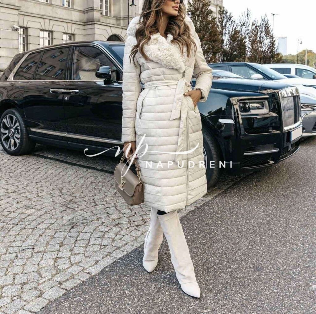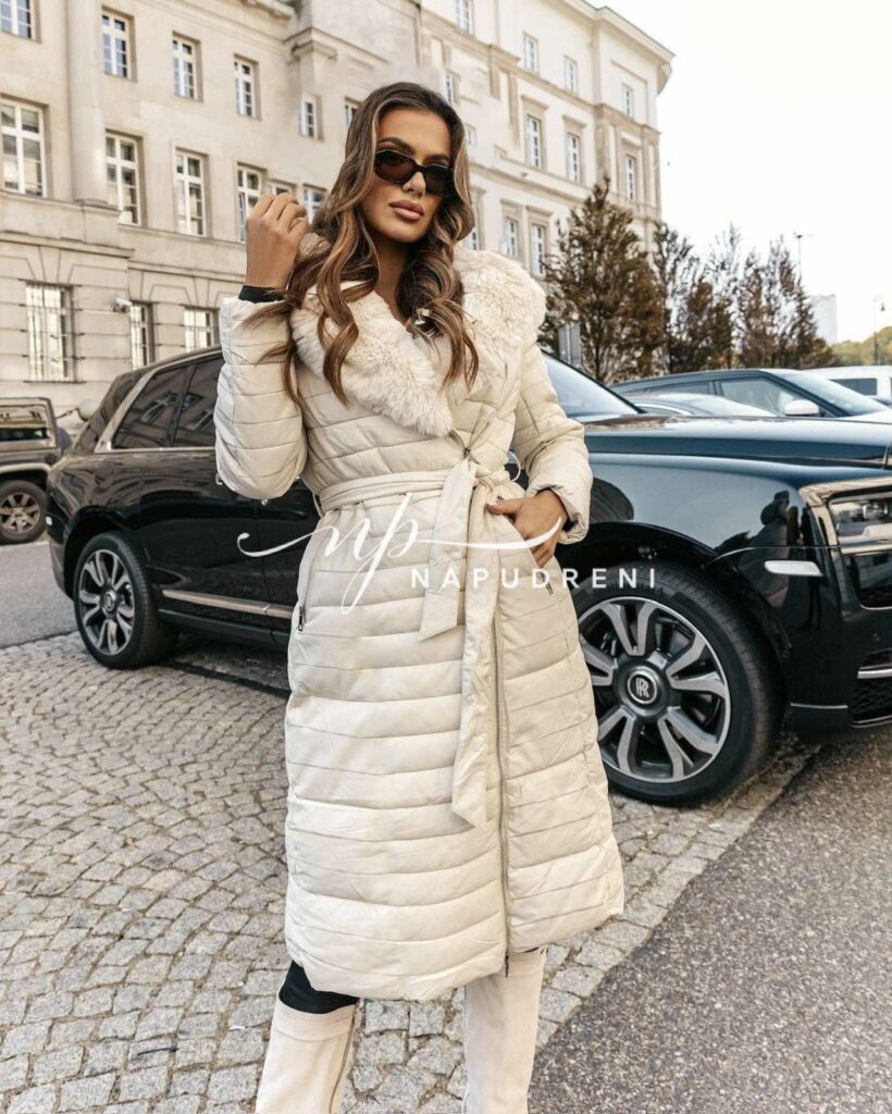 Дамско дълго яке с пух в бежов цвят – код 8162