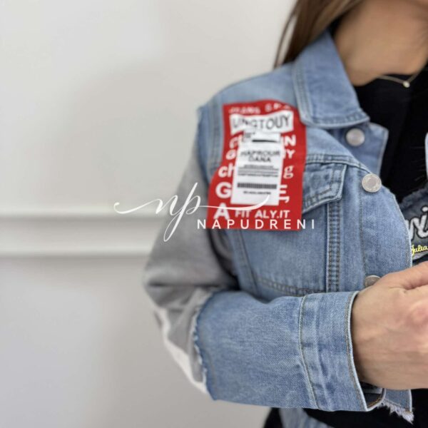 Дамско ефектно дънково яке със сиви ръкави – код 8637