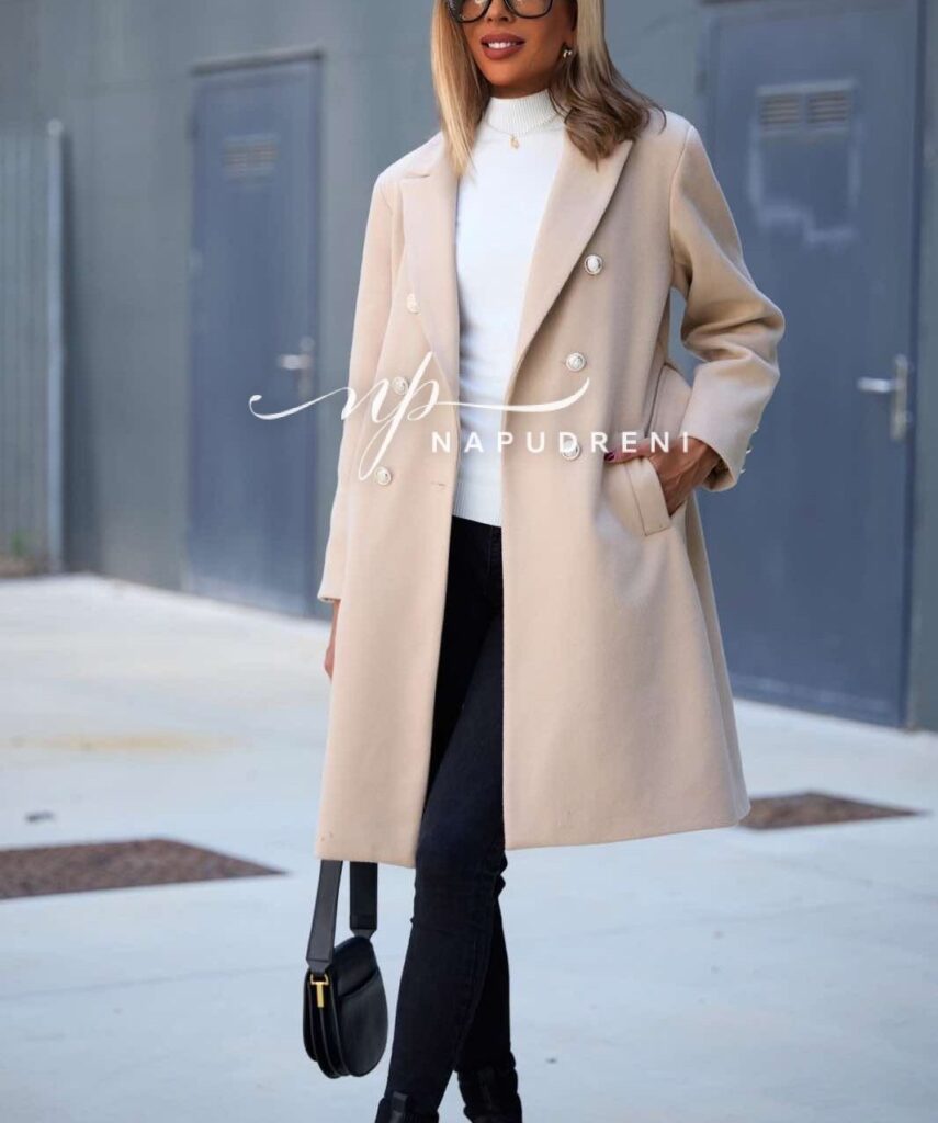 Дамско елегантно палто с копчета в бежов цвят – код 8062