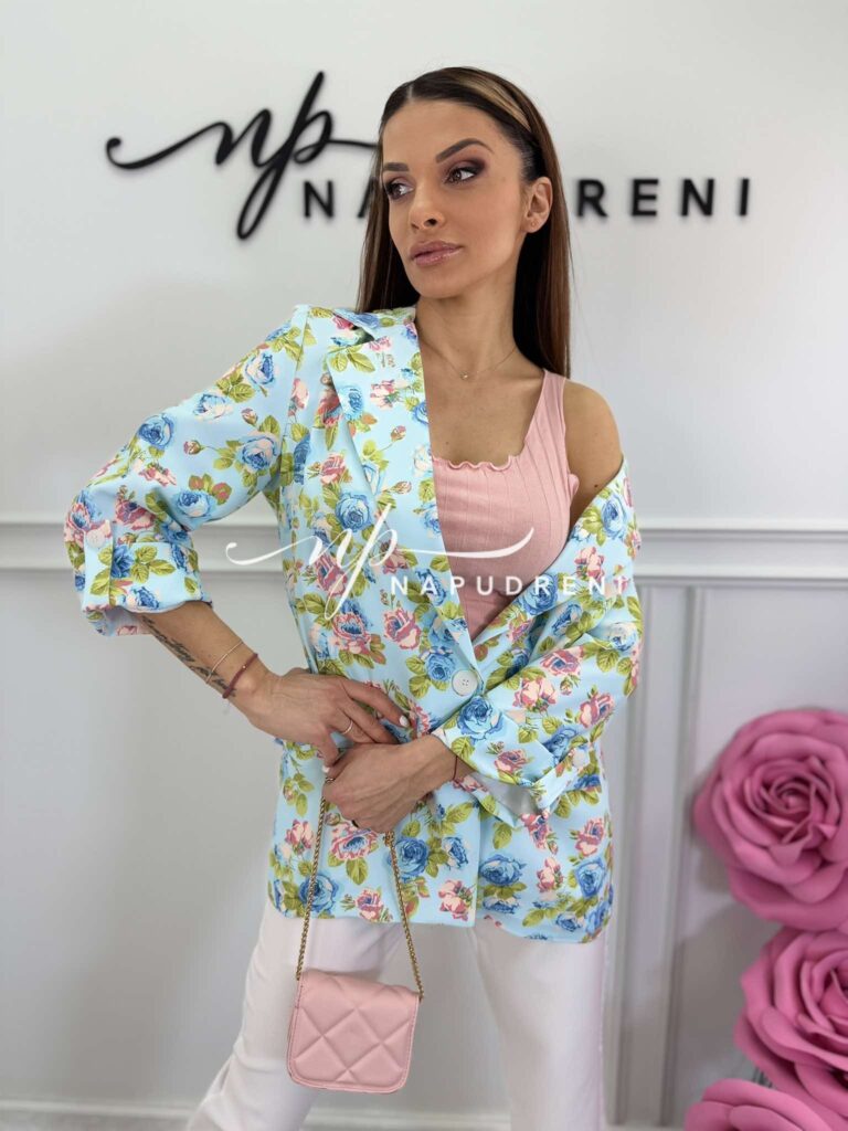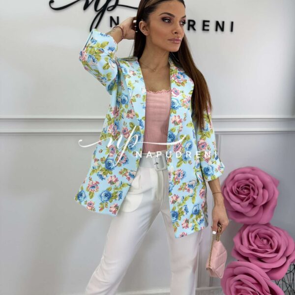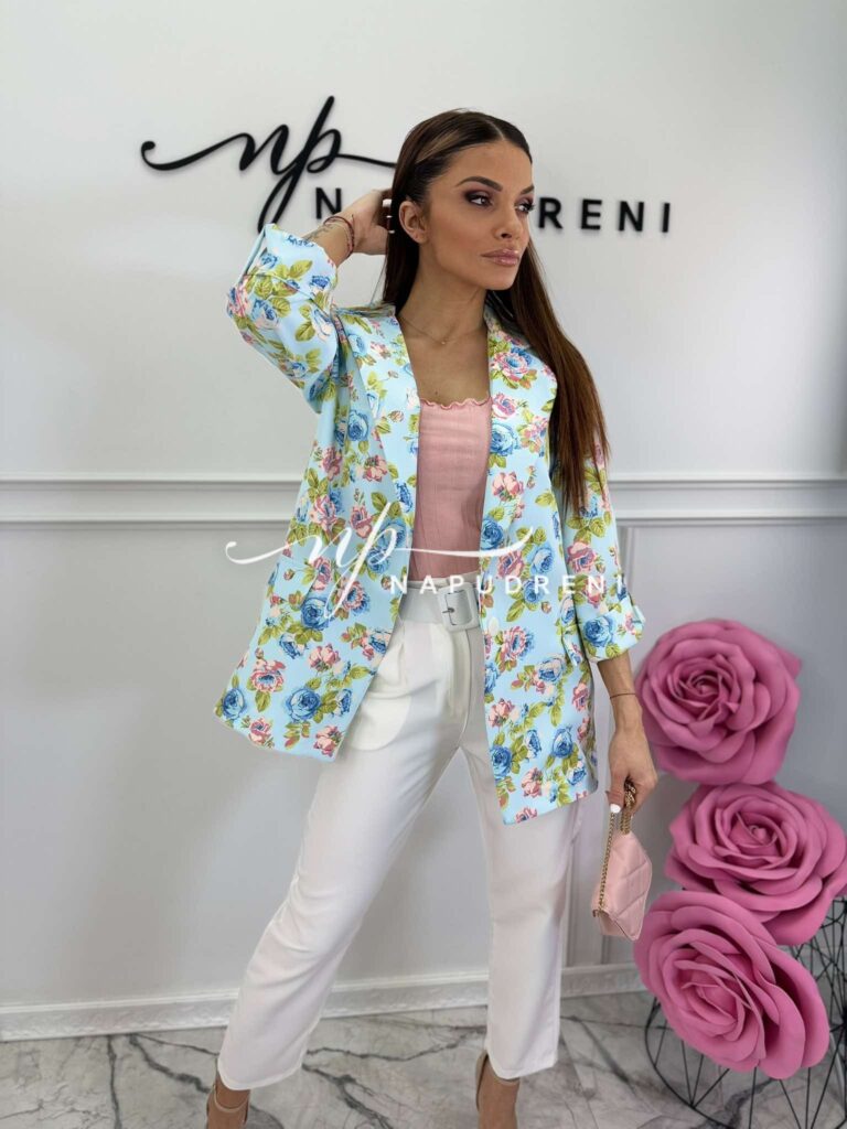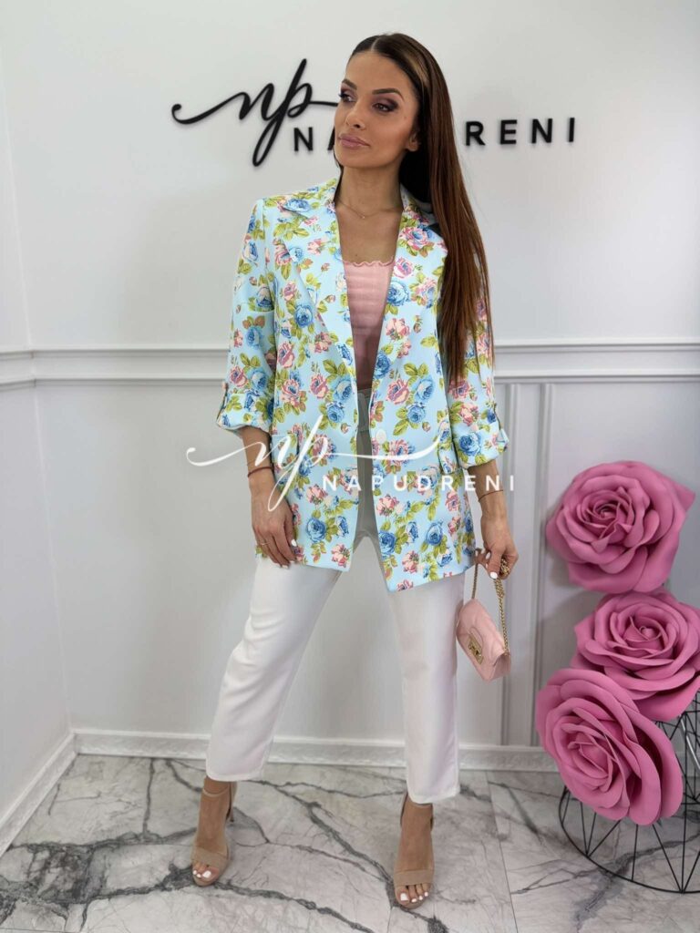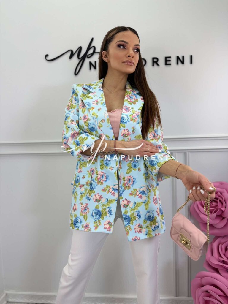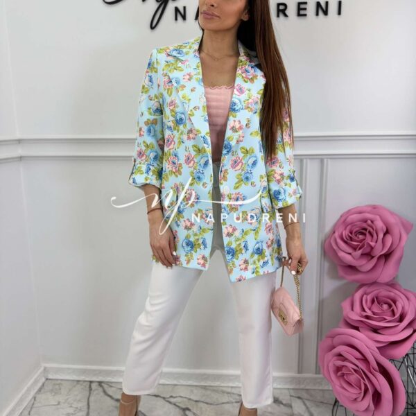 Дамско OVERSIZE сако с рози в син цвят – код 8763