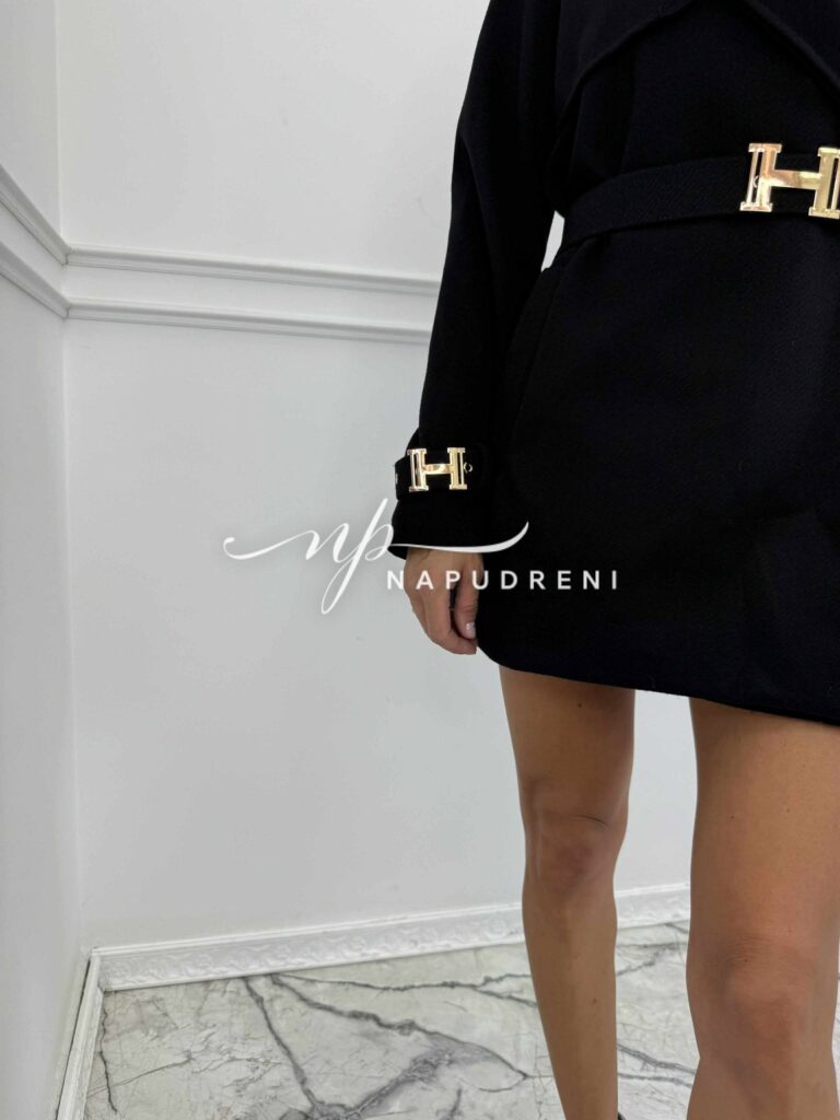 Дамско палто с ефектен колан в черен цвят – код BL9922