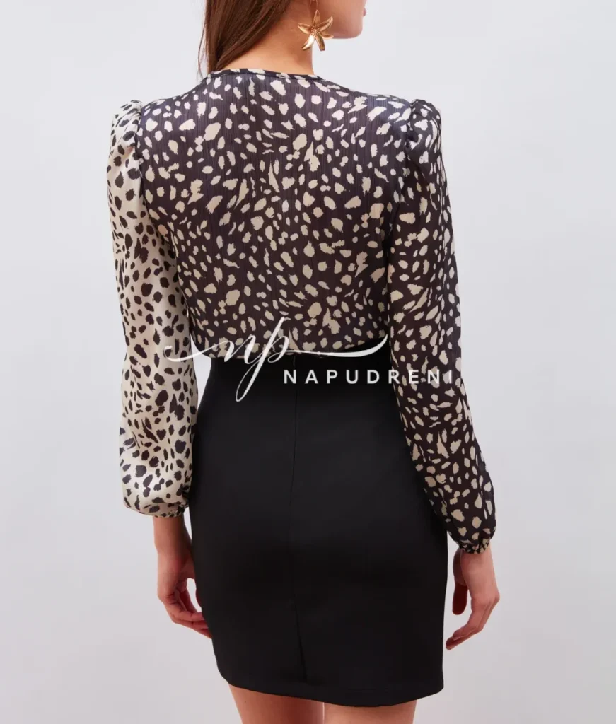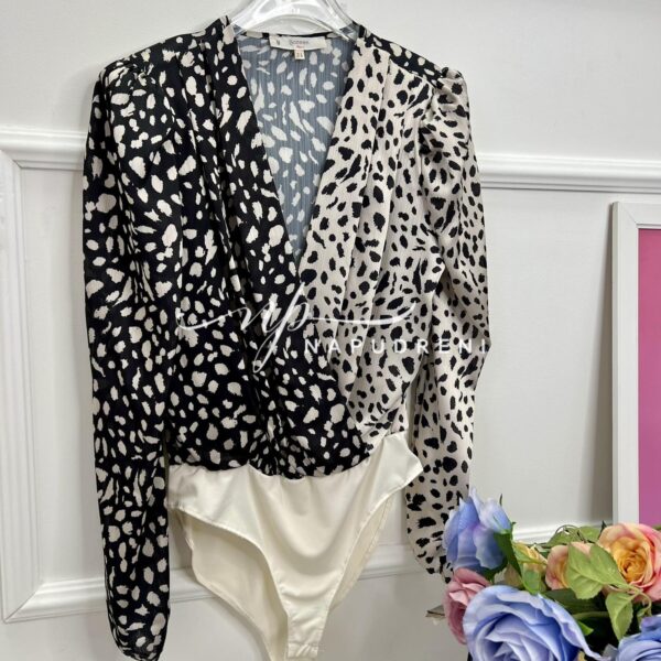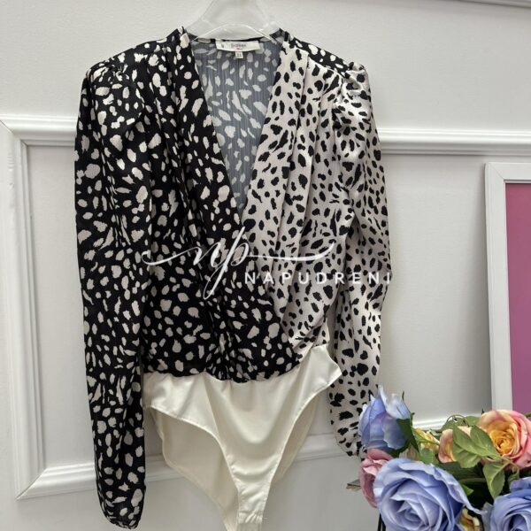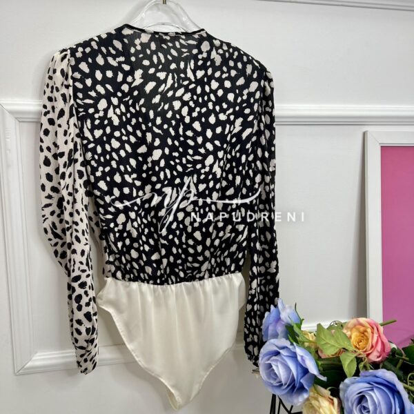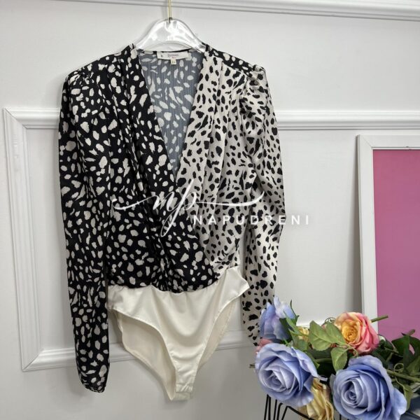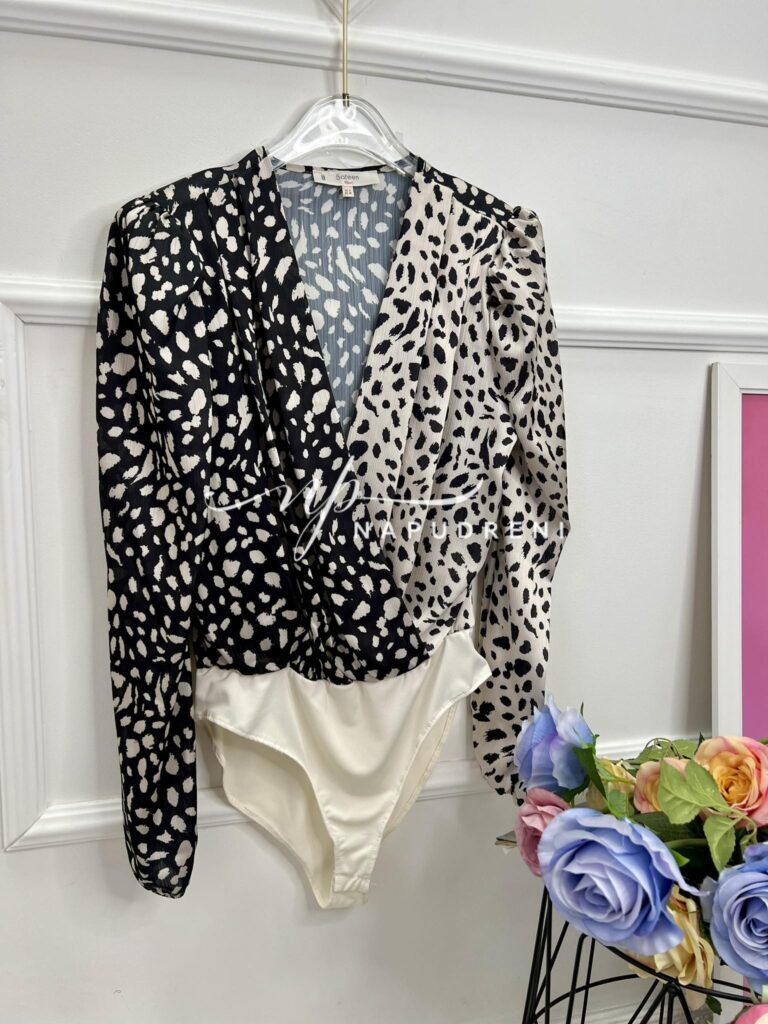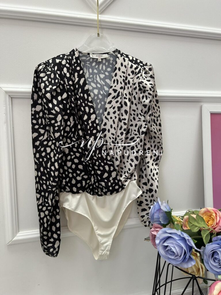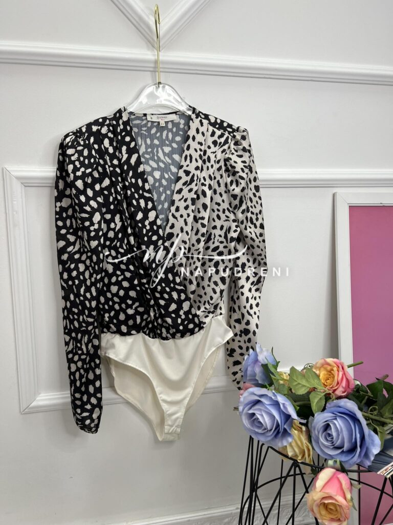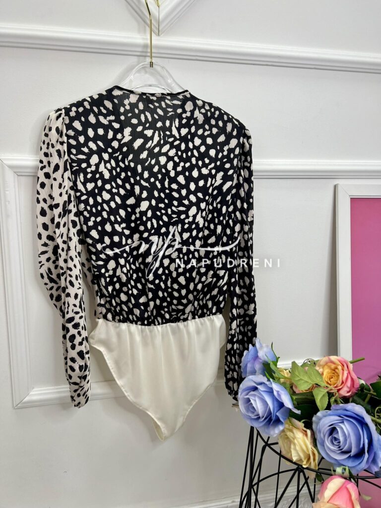Дамско сатенено боди в животински принт в черно-бял цвят – код 7087
