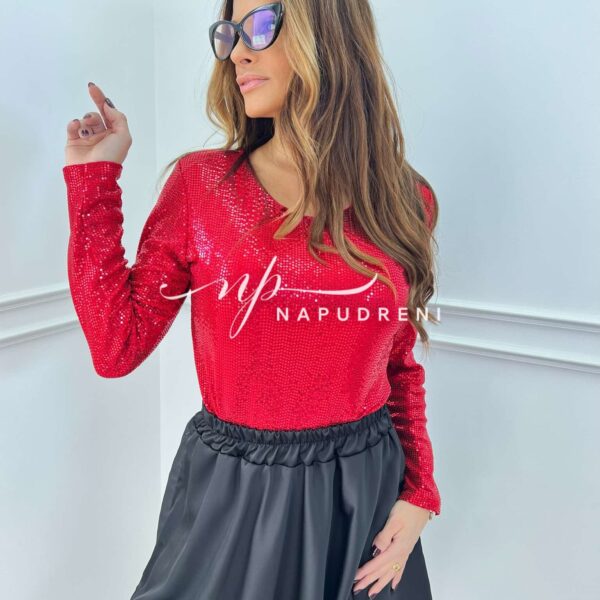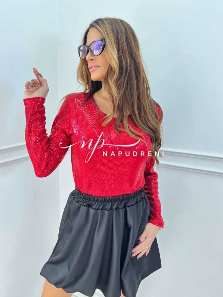 Дамско стилно боди с пайети в червен цвят – код 8422