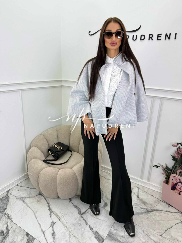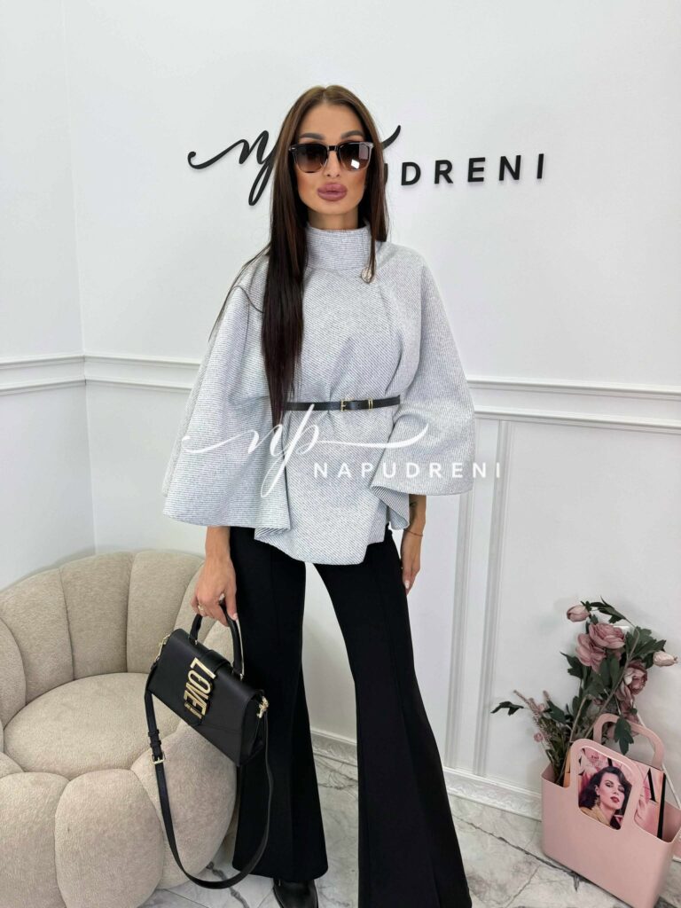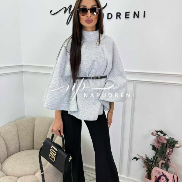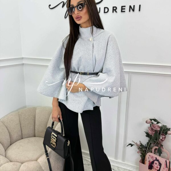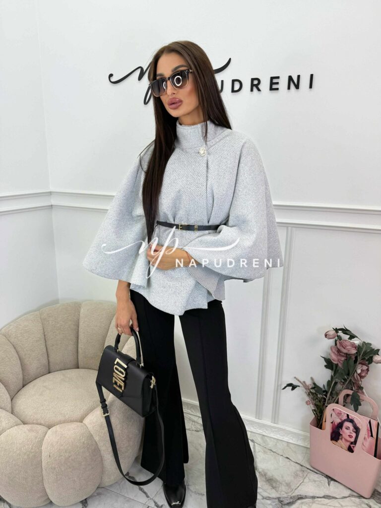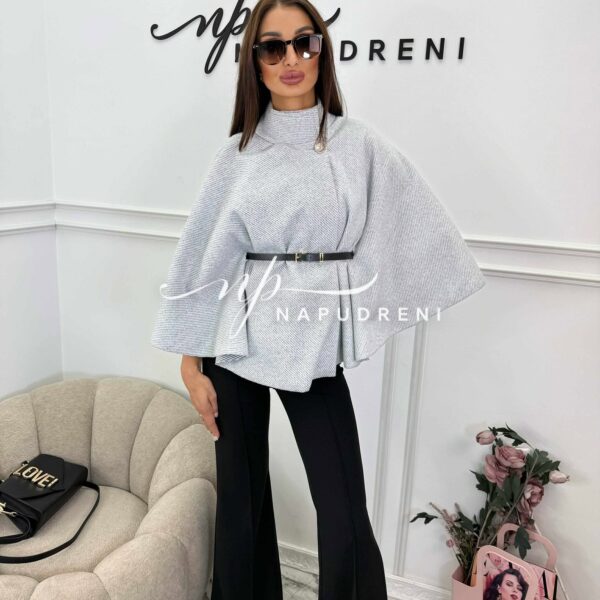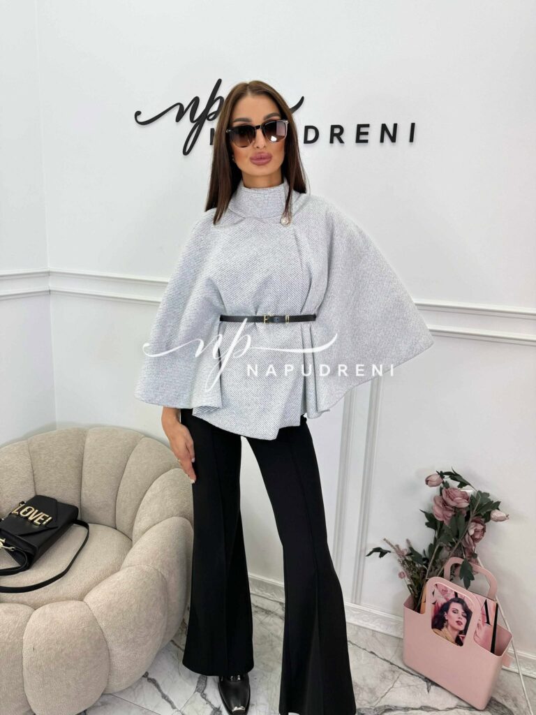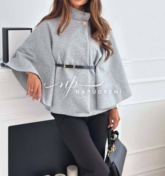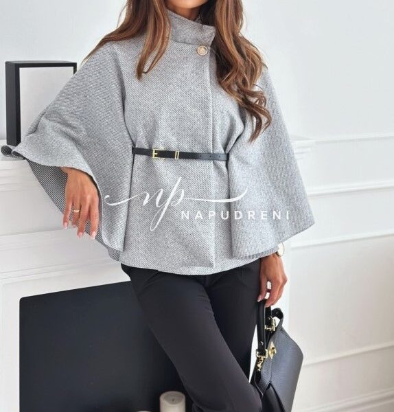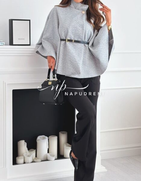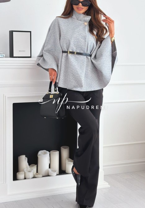 Дамско стилно палто с колан в сив цвят – код 7963