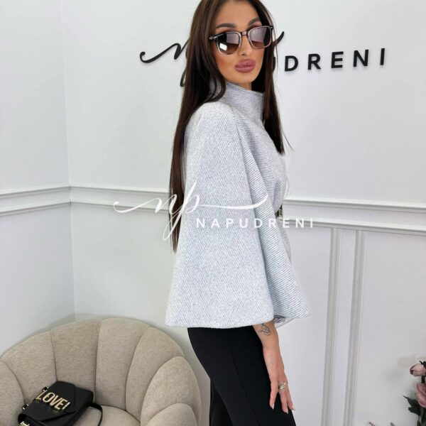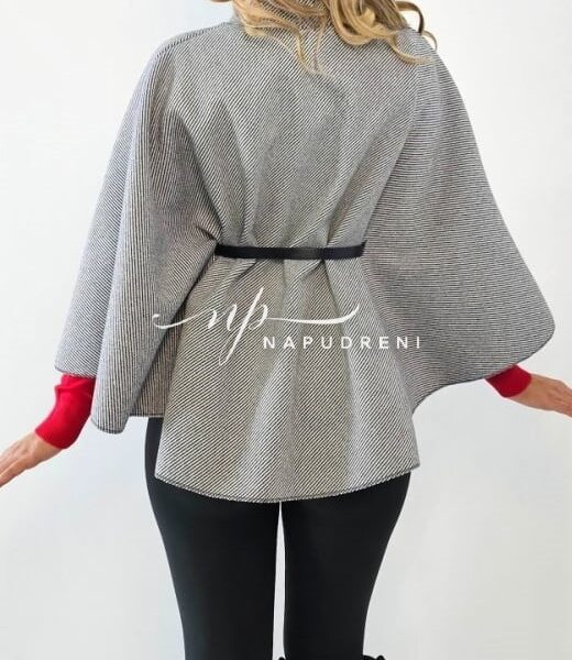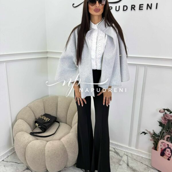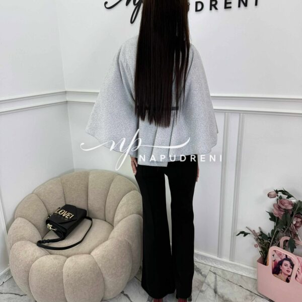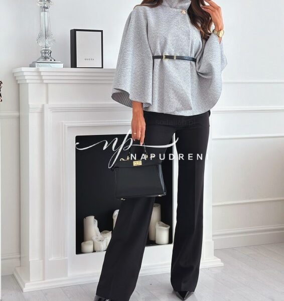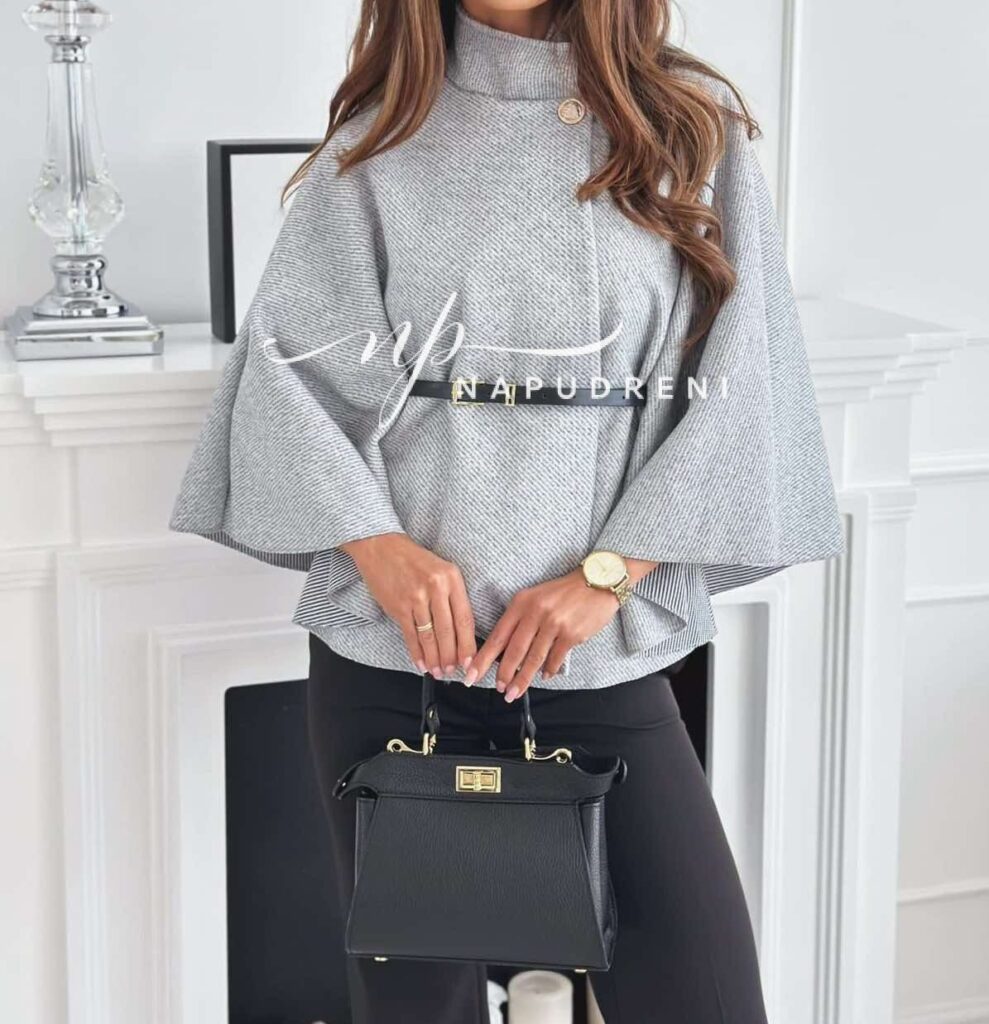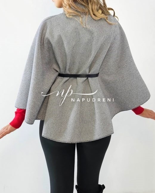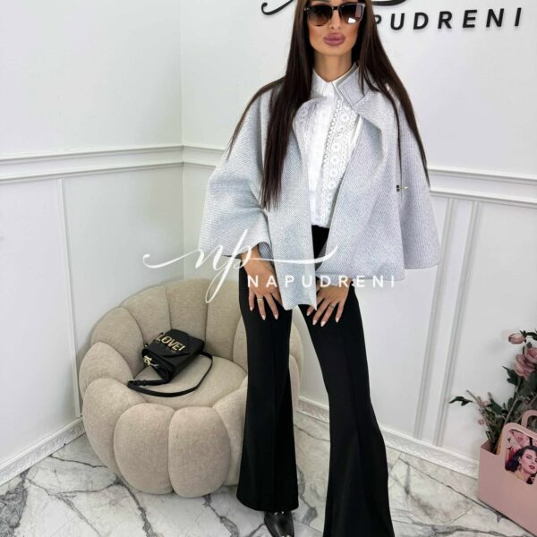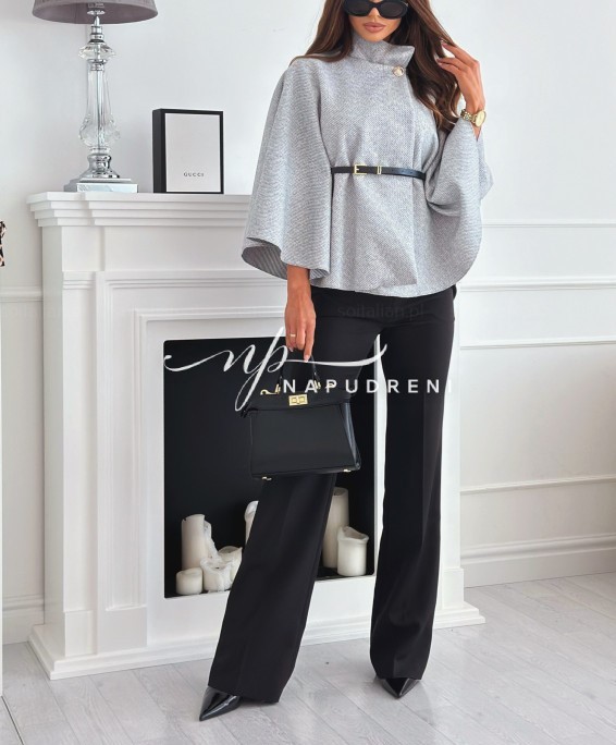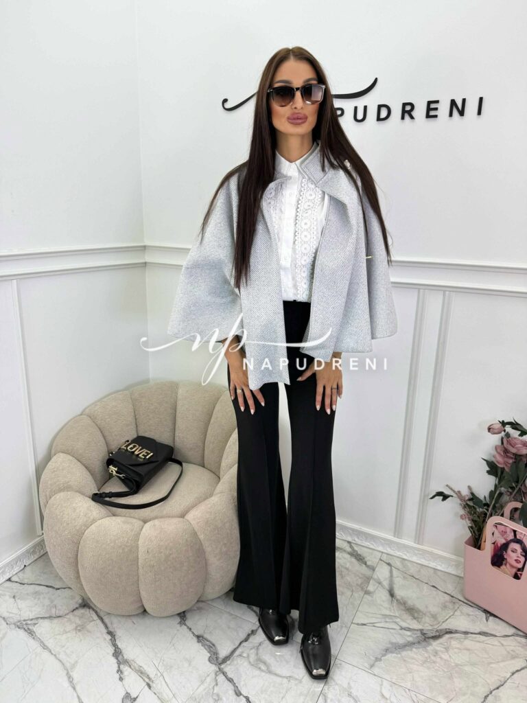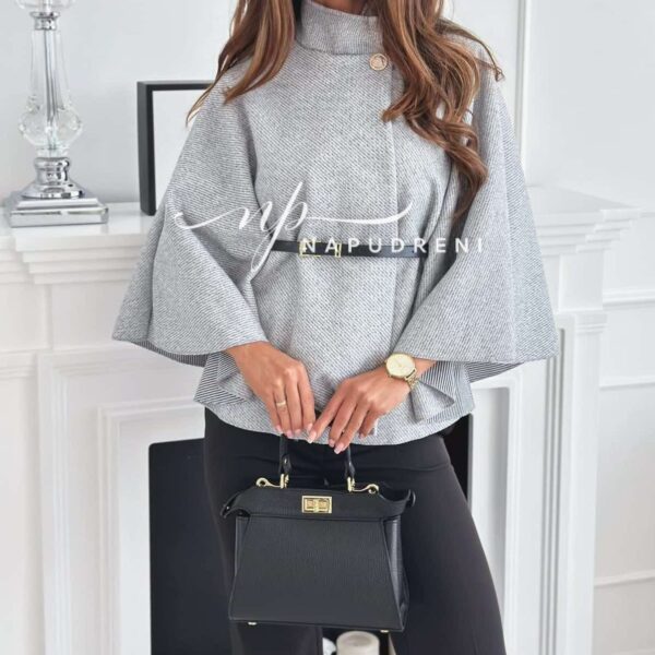 Дамско стилно палто с колан в сив цвят – код 7963