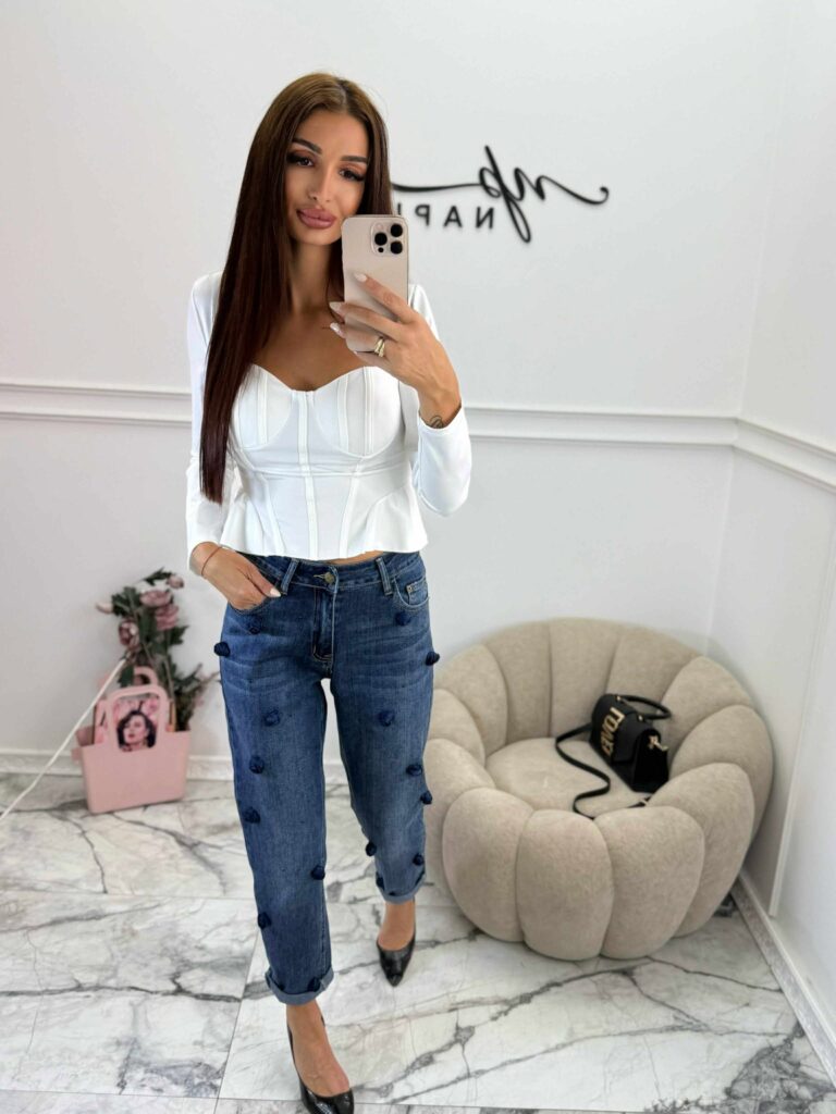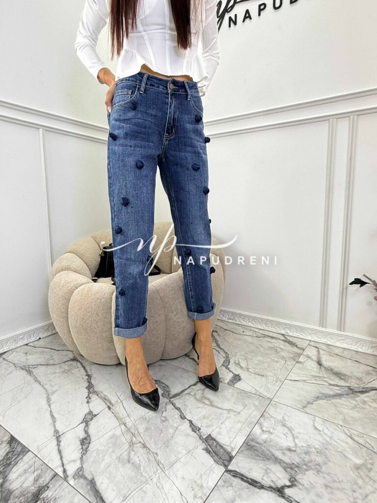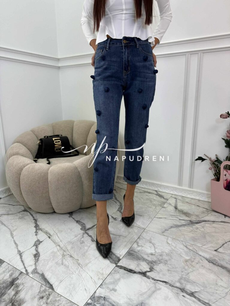 Дънки “MOM JEANS“ декорирани с мини рози – код BL9969