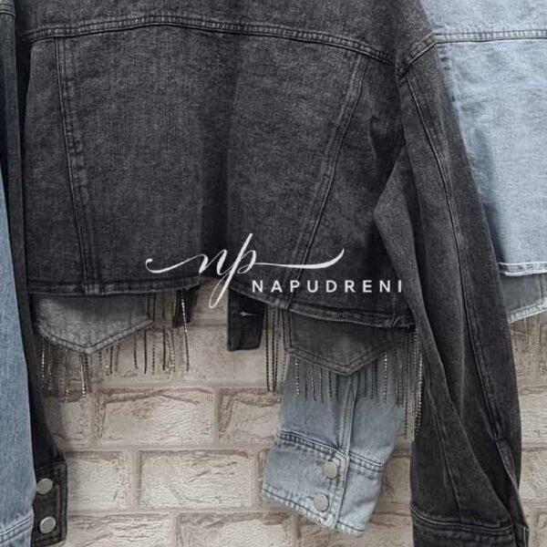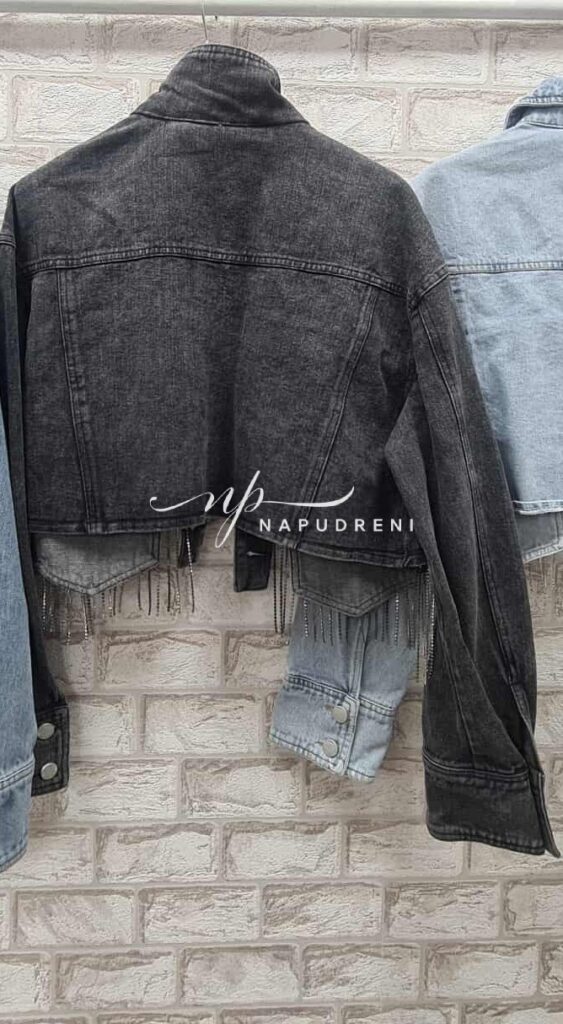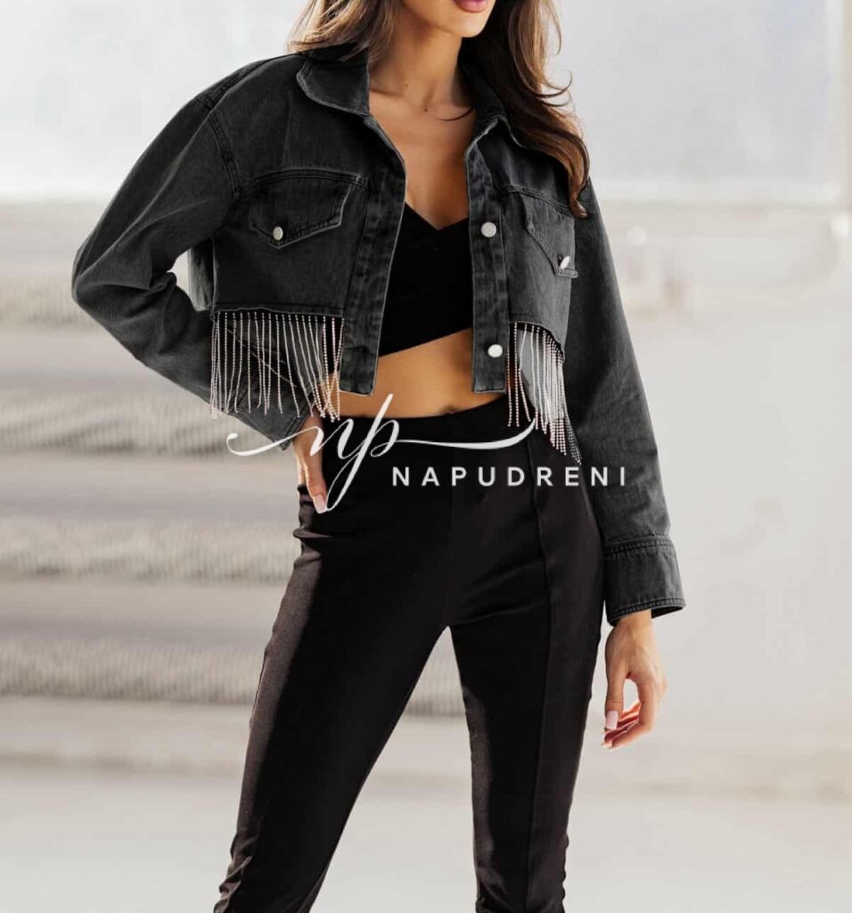 Дънково късо яке с ресни в черен цвят – BL9756