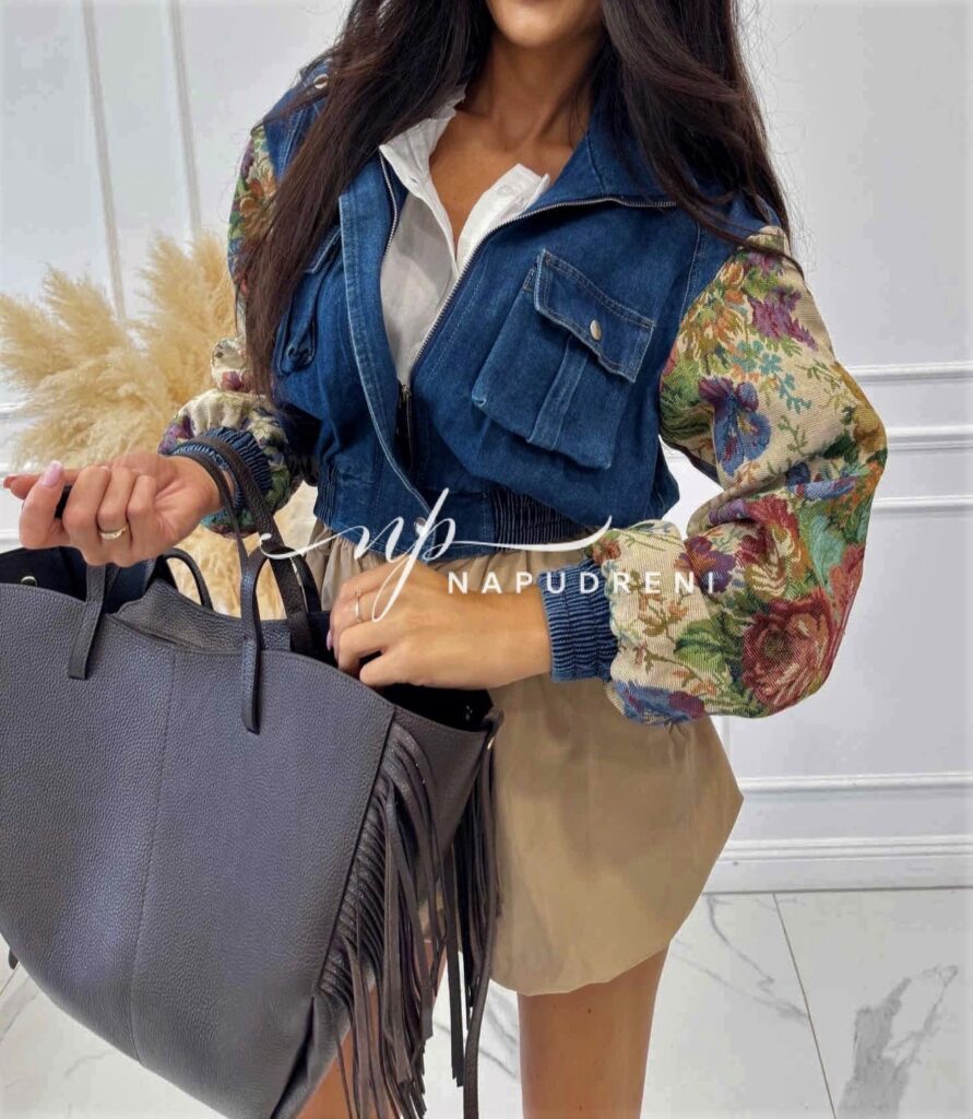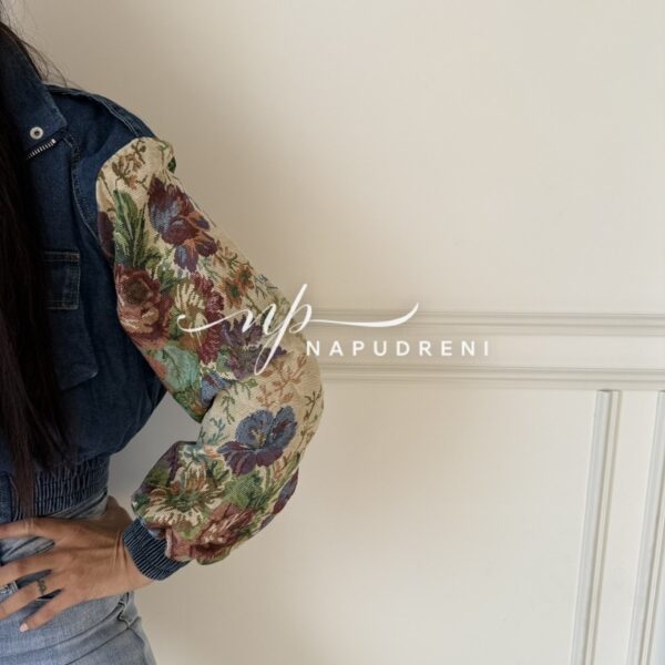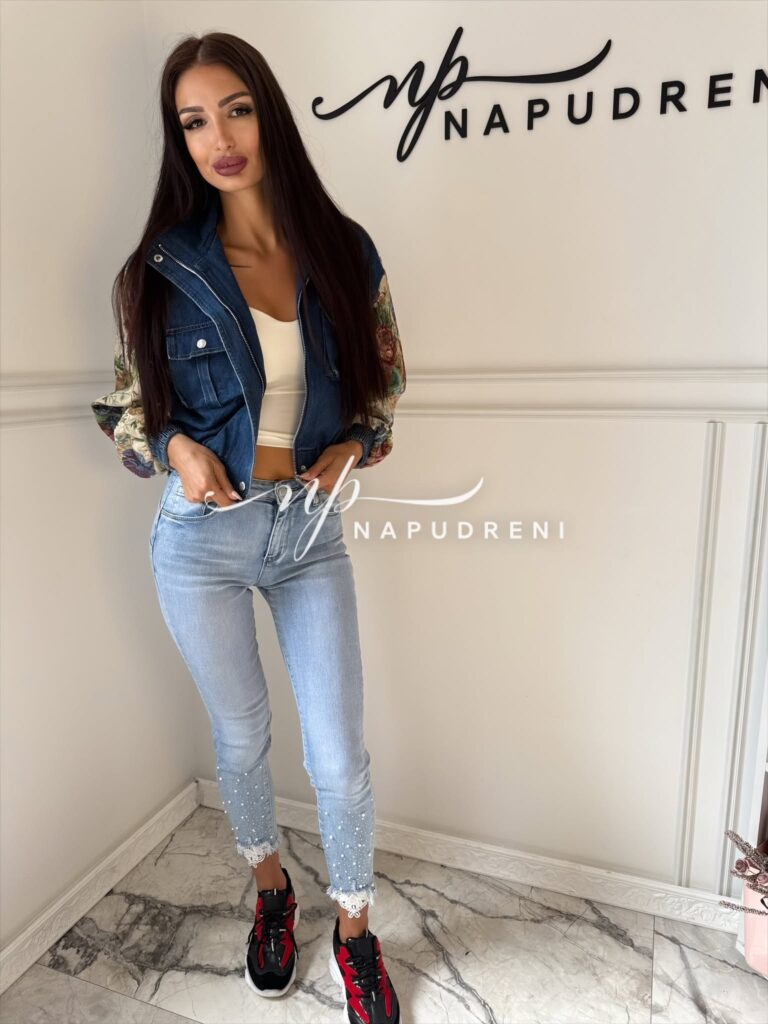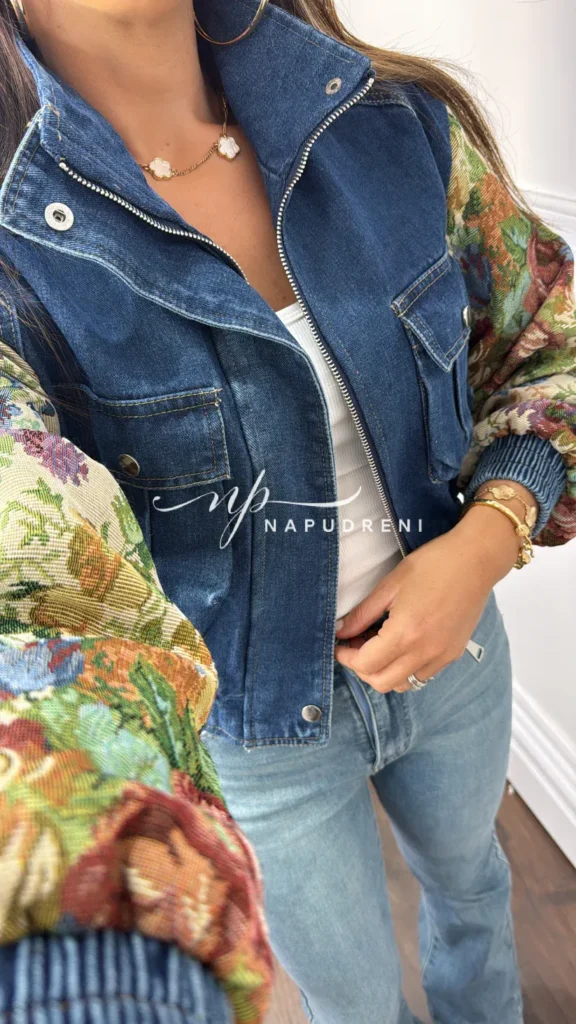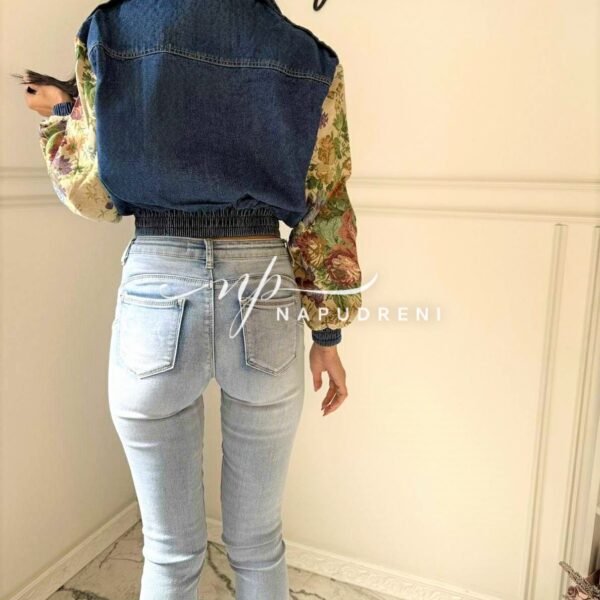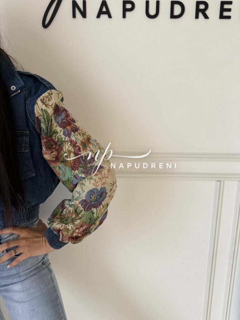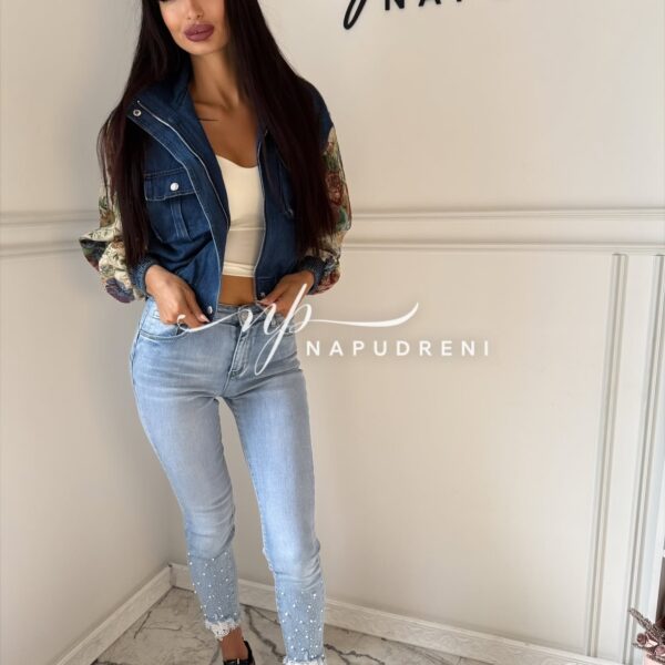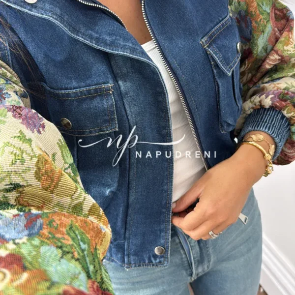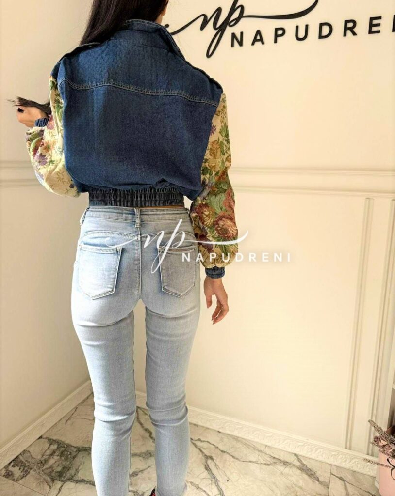 Дънково яке с цветна бродерия на ръкавите – код G9805