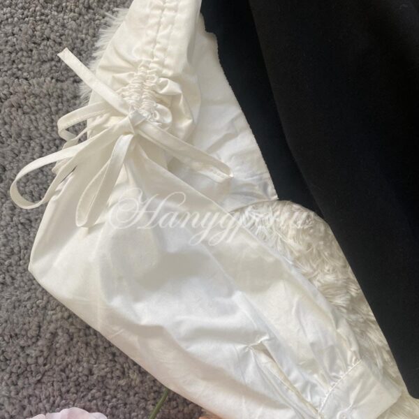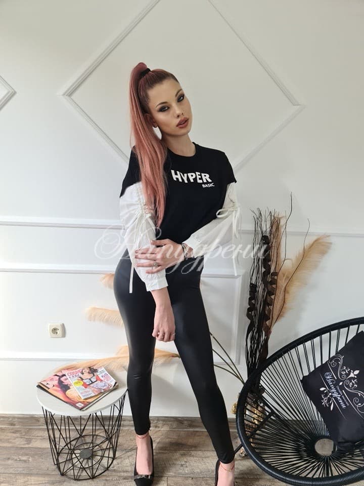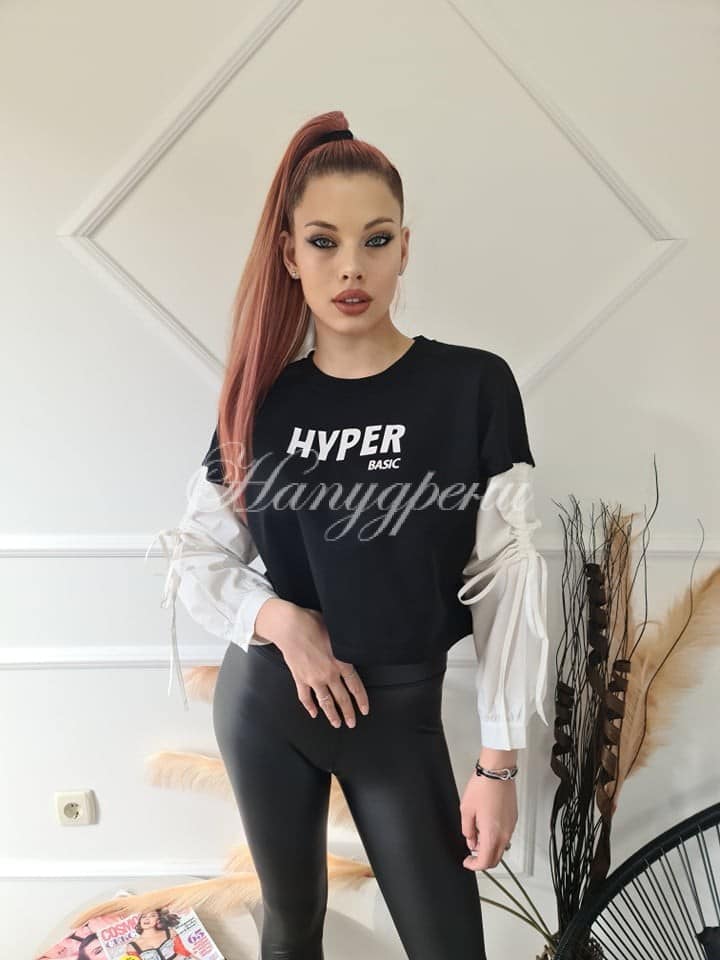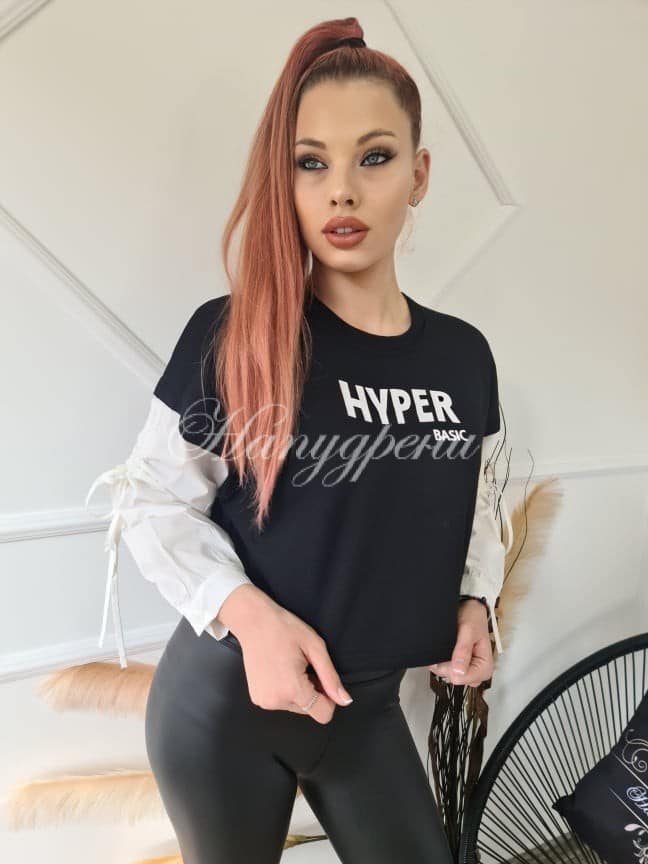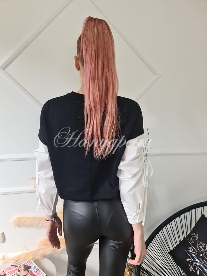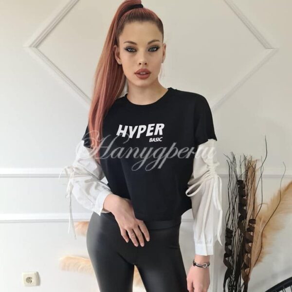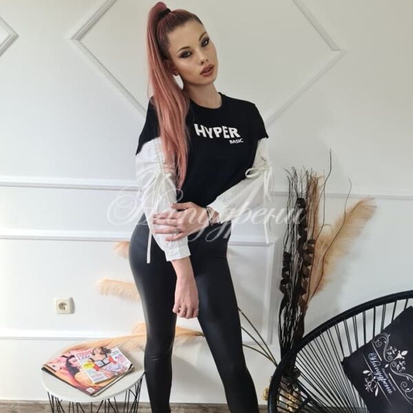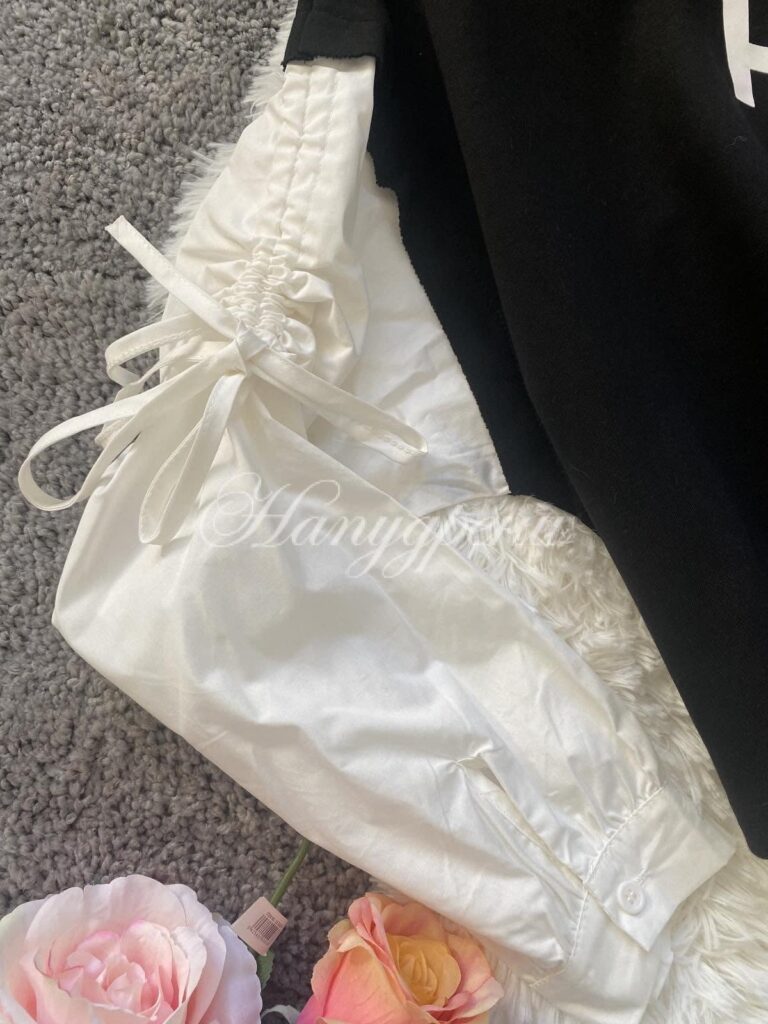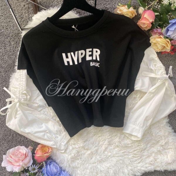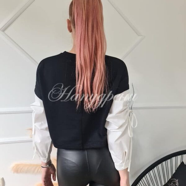 • Моделът е с дълъг ръкав и връзки по дължината на ръкавите.