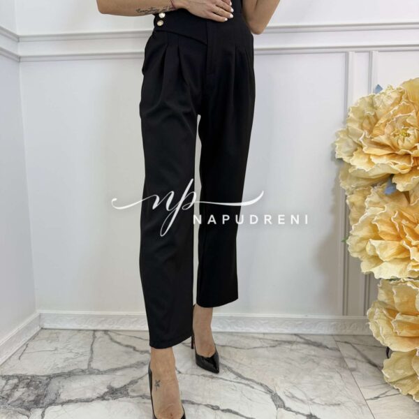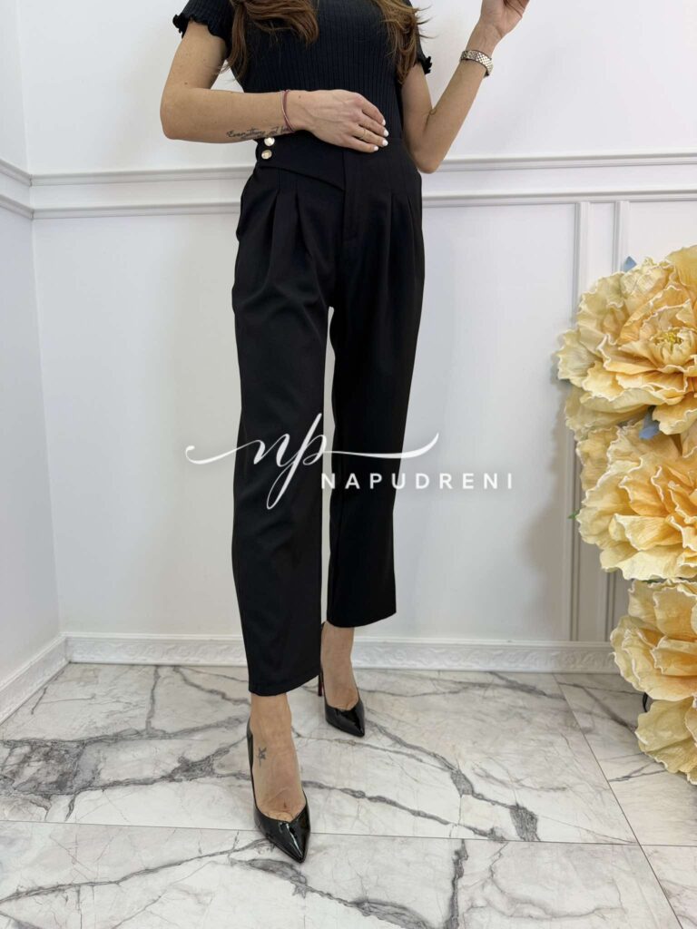 Елегантен дамски панталон с копчета в черен цвят – код 8717