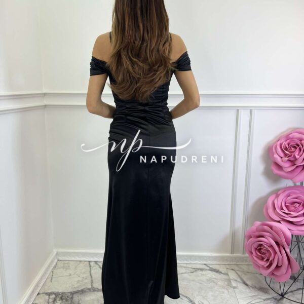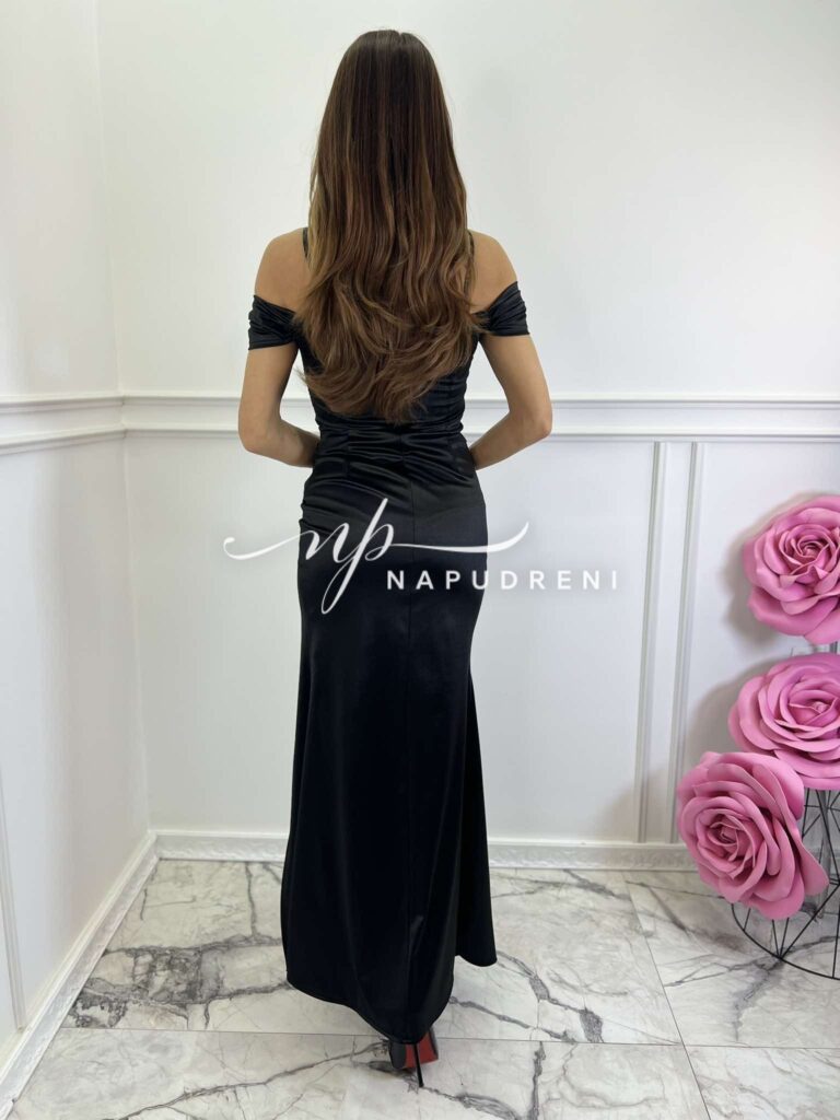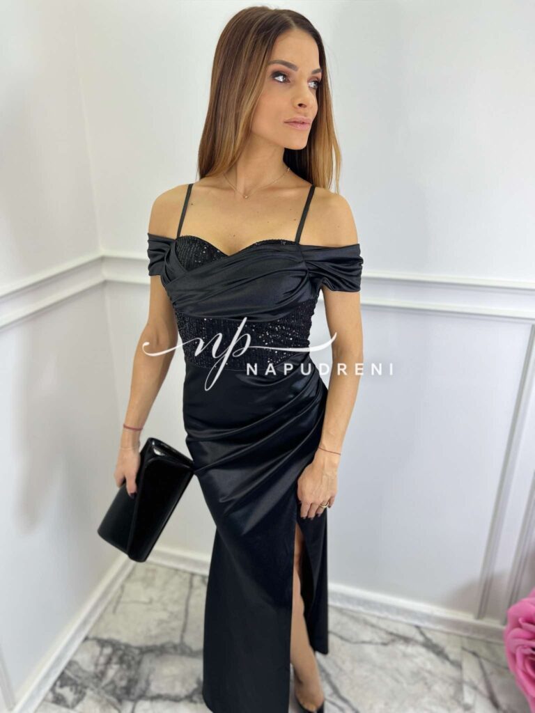 Елегантна сатенена рокля с пайети в черен цвят- код 8459