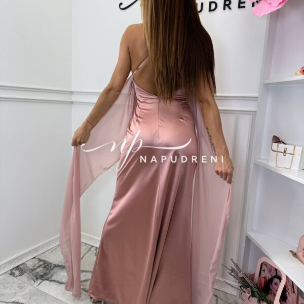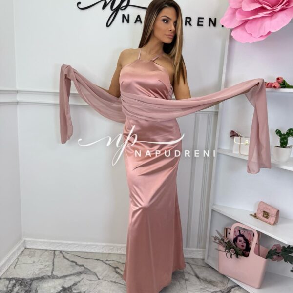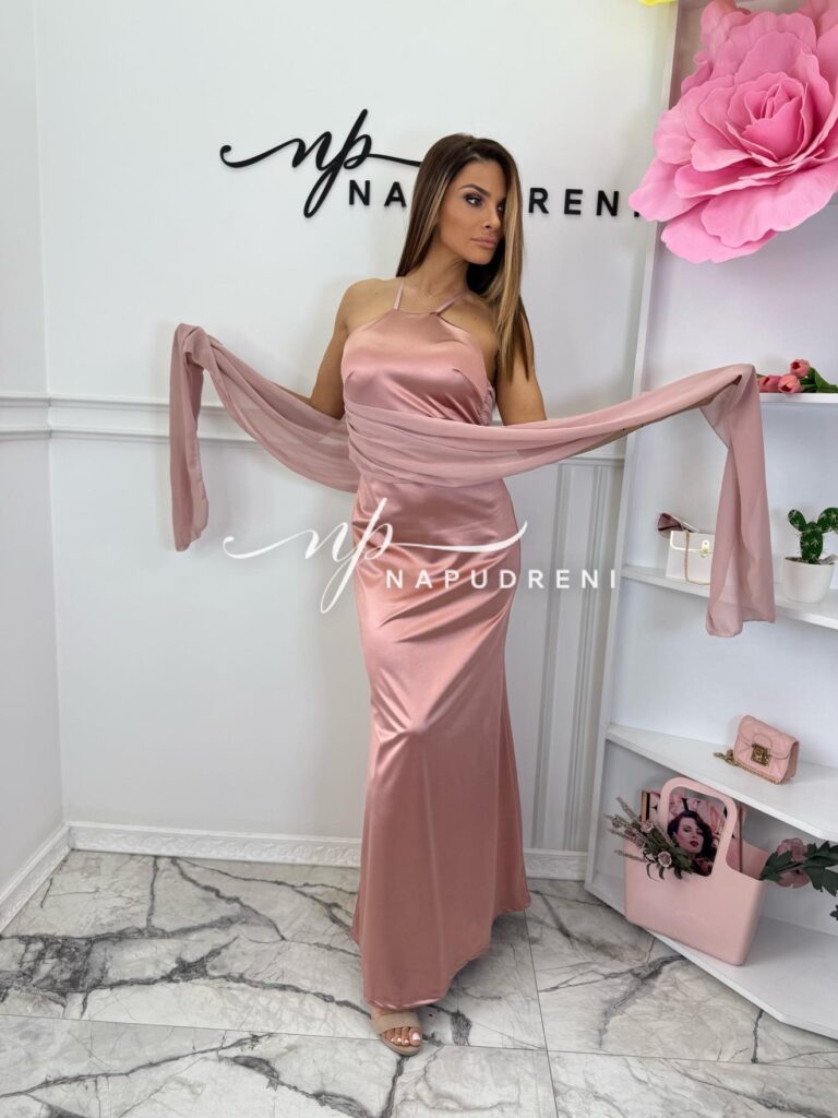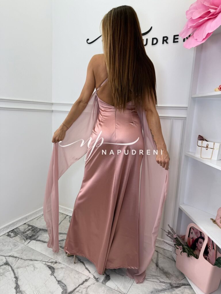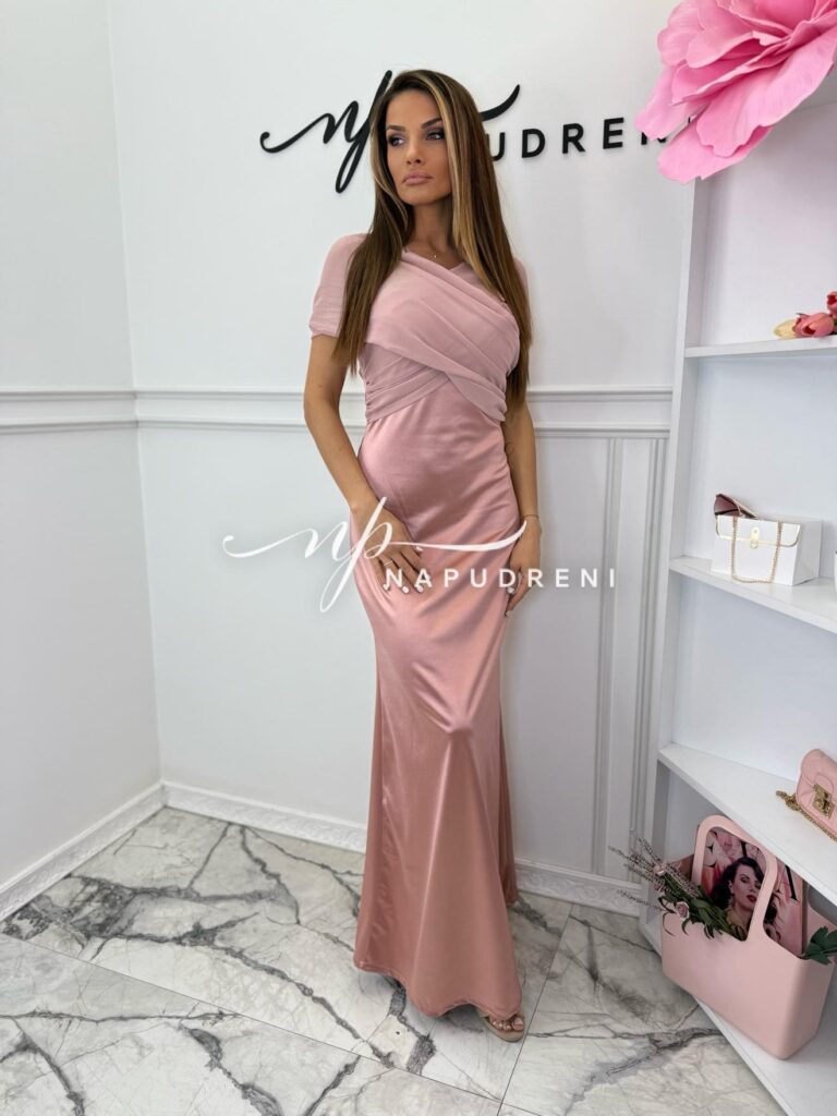 Елегантна сатенена рокля с тюл “MATEYA“ в цвят пудра – код BL9311