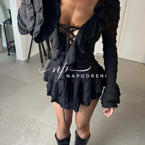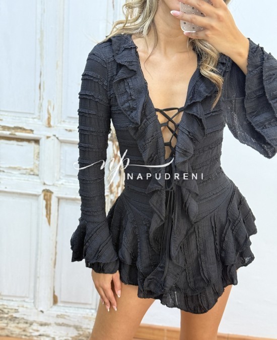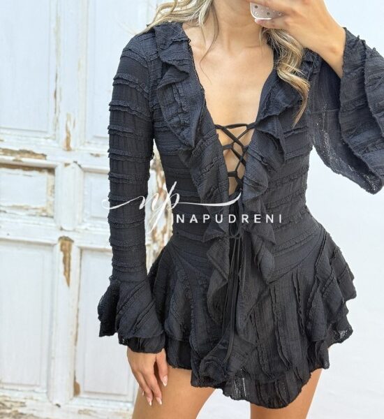 Гащеризон с връзки и волани “SILKI STORM“ в черен цвят – код Bi10180