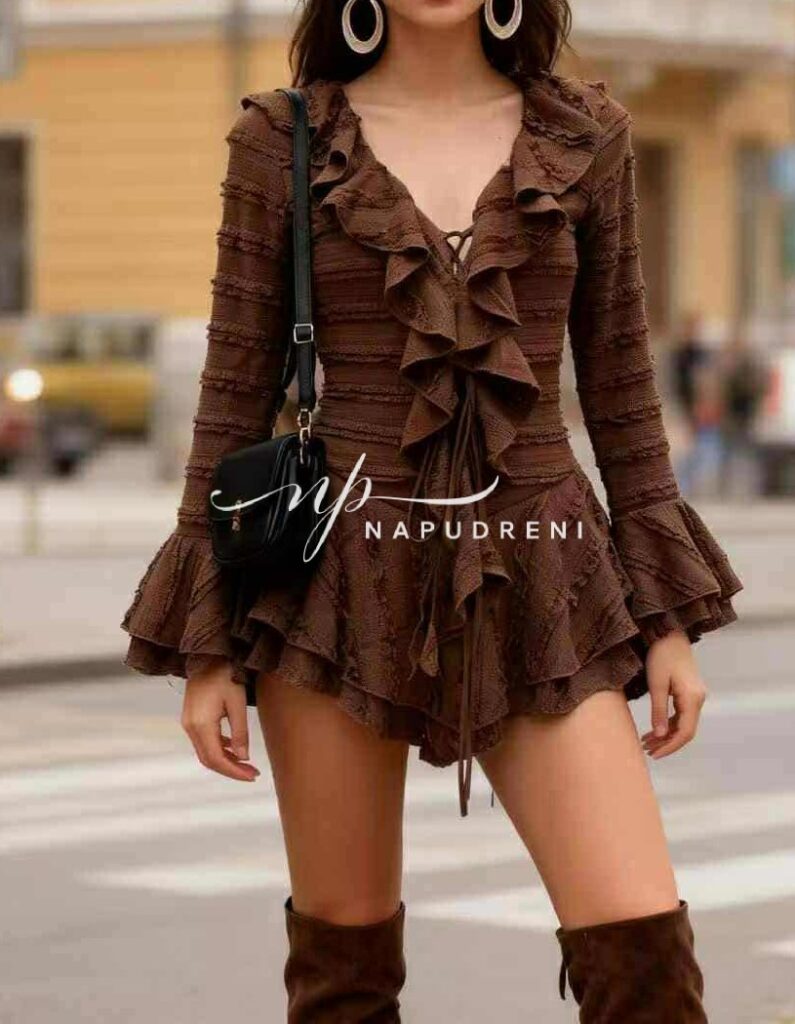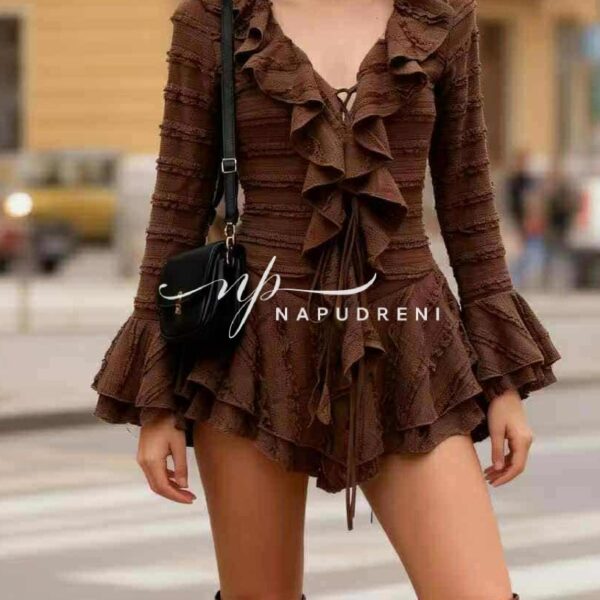 Гащеризон с връзки и волани “SILKI STORM“ в кафяв цвят – код Bi10181