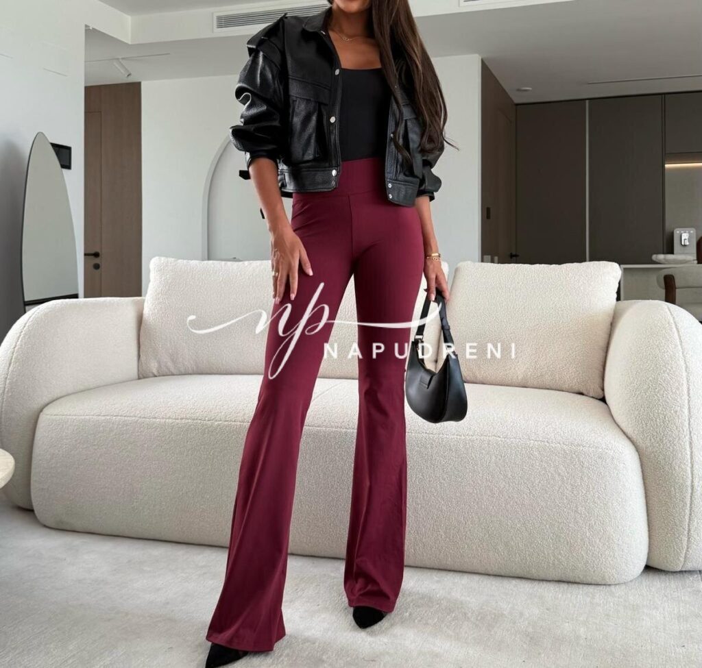 Изчистен разкроен панталон “LEXI“ в цвят бордо – G9771