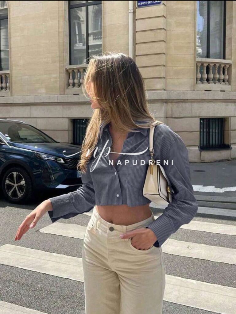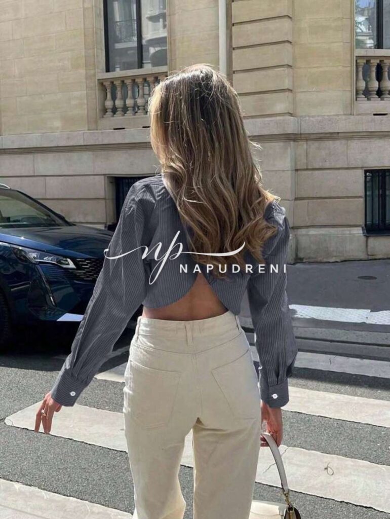 Къса риза с райета и класическа яка в черен цвят – код BL9726