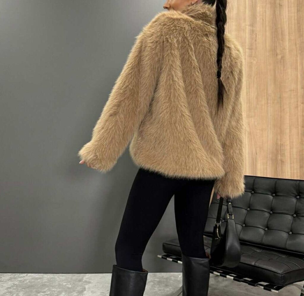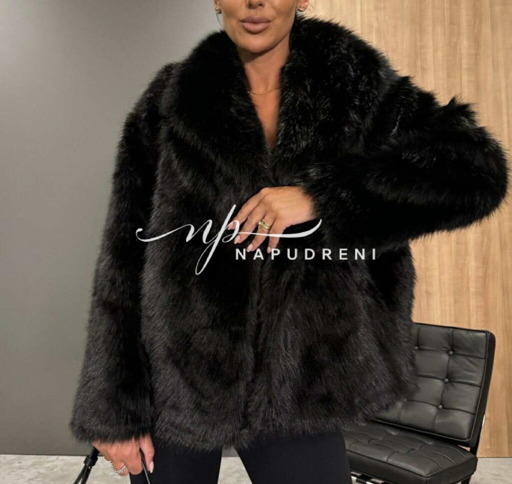 Късо палто с яка „Crystal Fur“ в черен цвят – код G10009