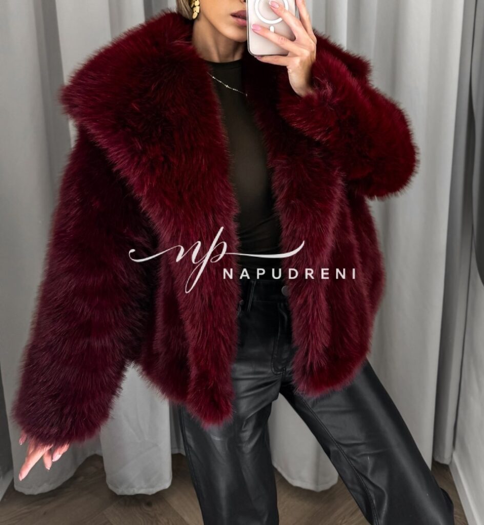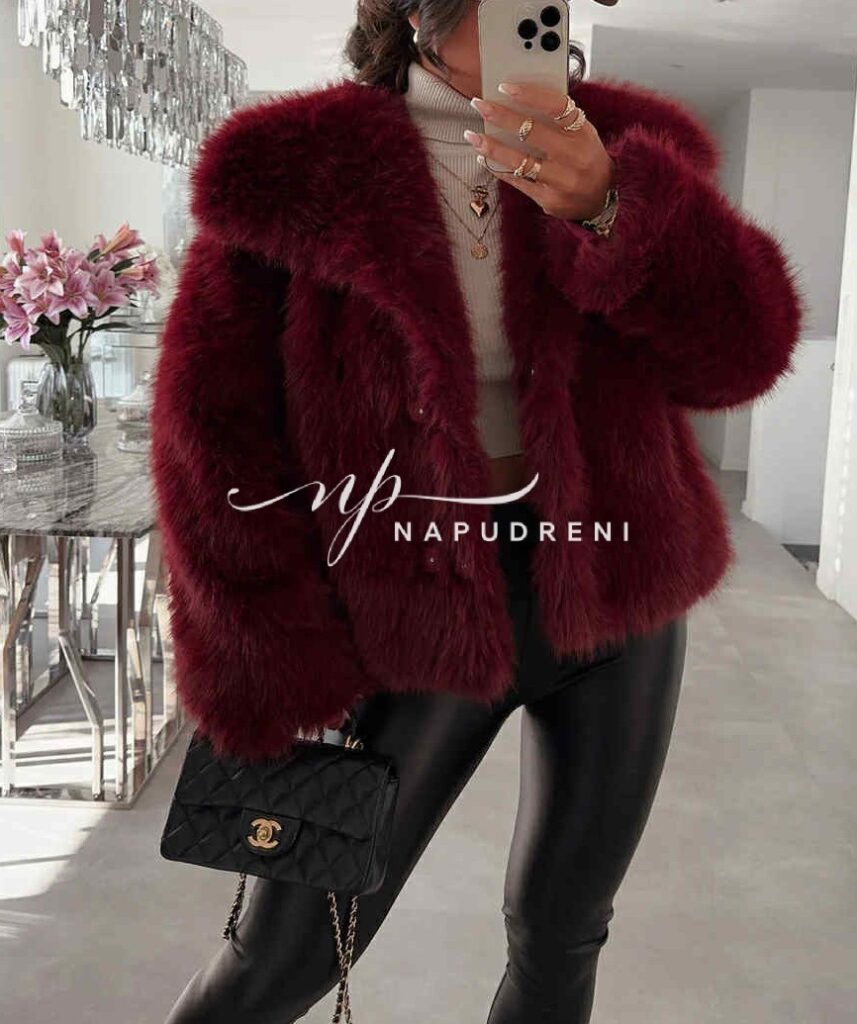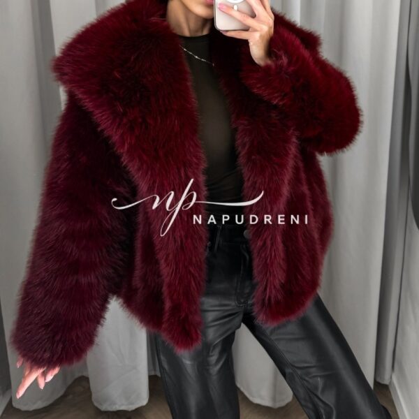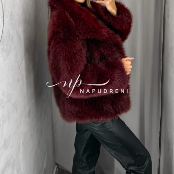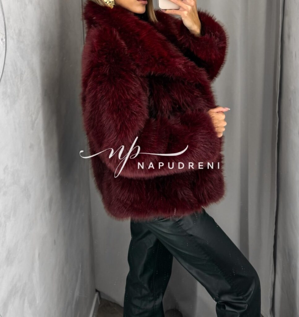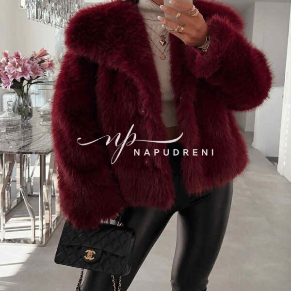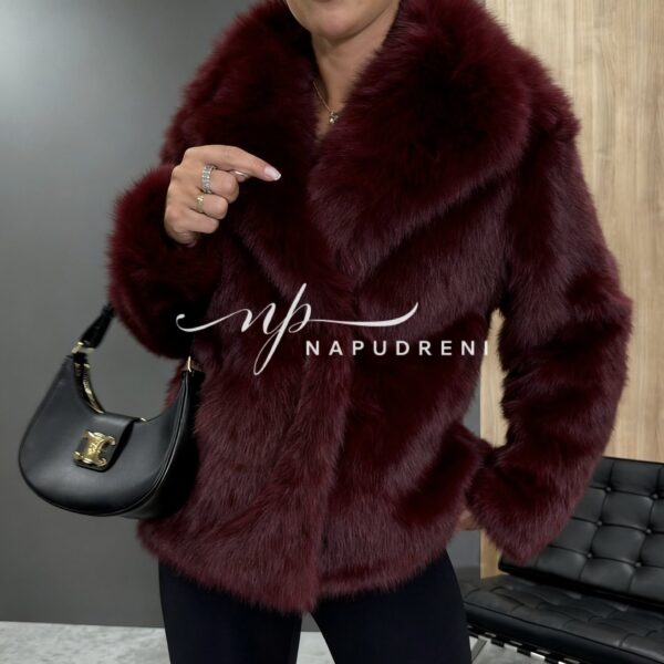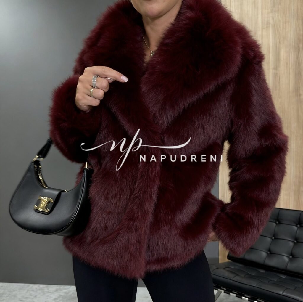 Късо палто с яка „Crystal Fur“ в цвят бордо – код G10011