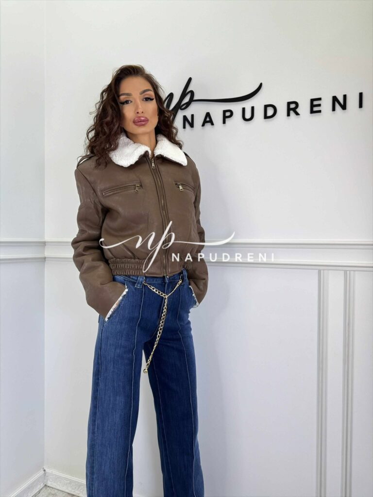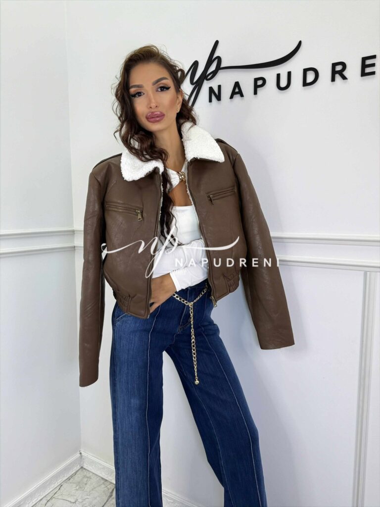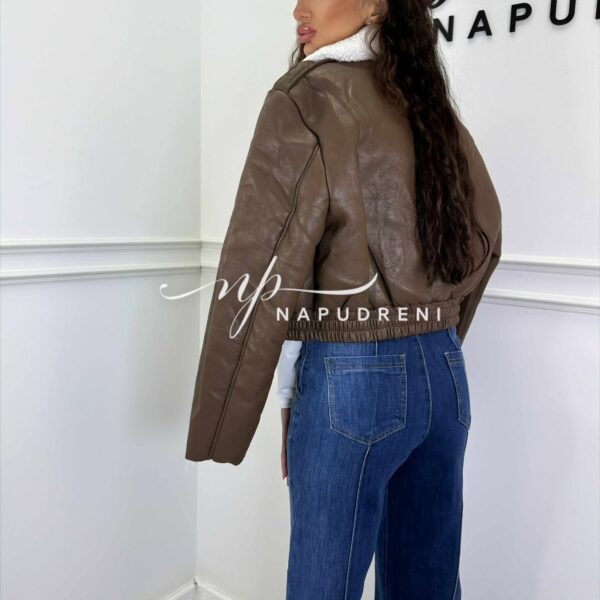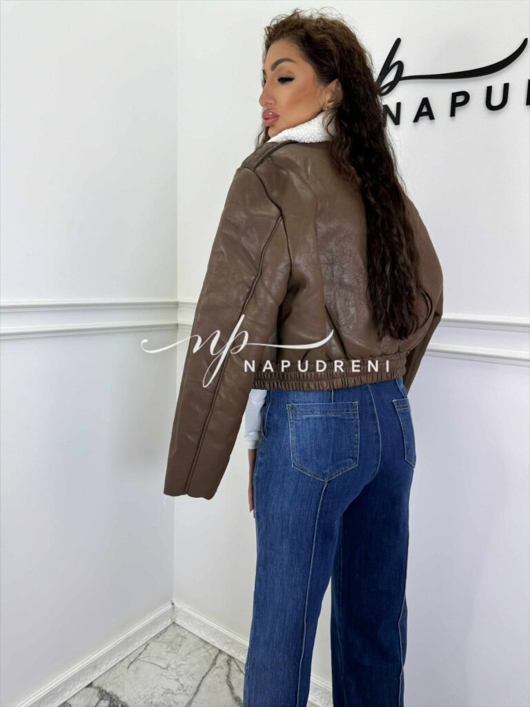Кожено яке в кафяв цвят с бяла вата – код GT9832