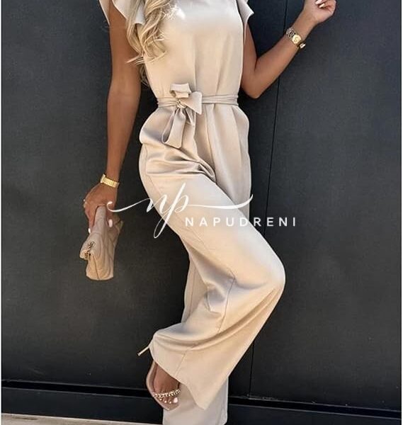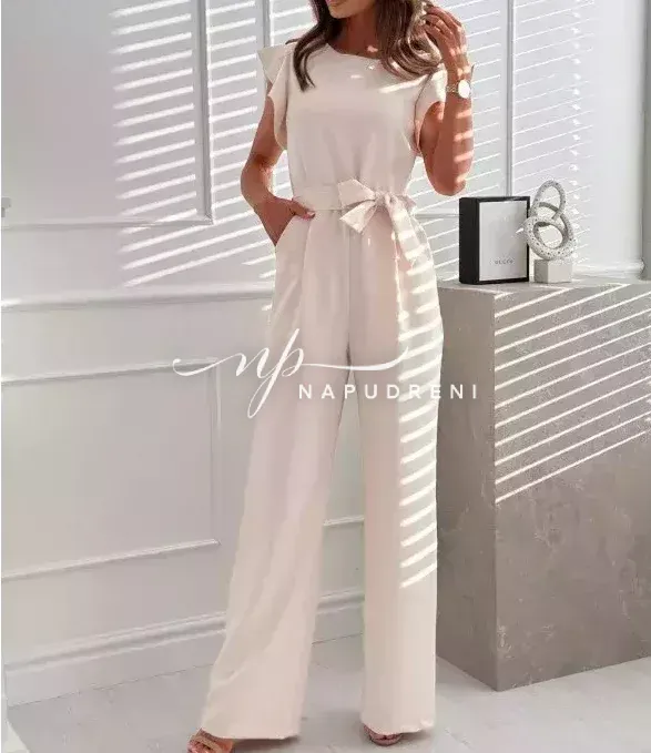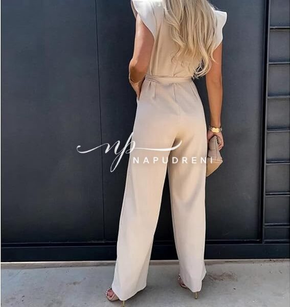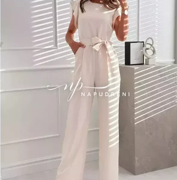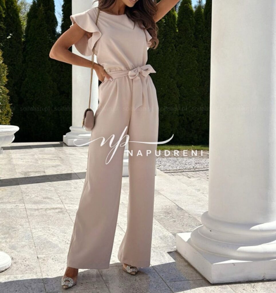 Кокетен дълъг гащеризон в бежов цвят – код G9175