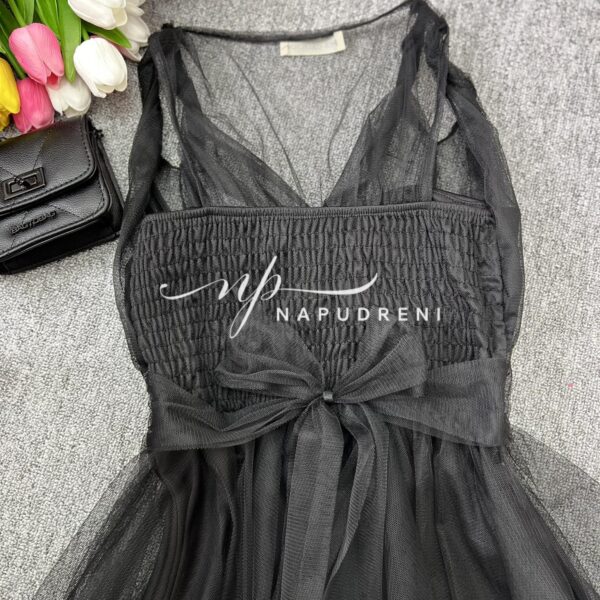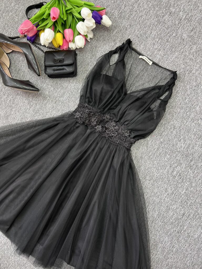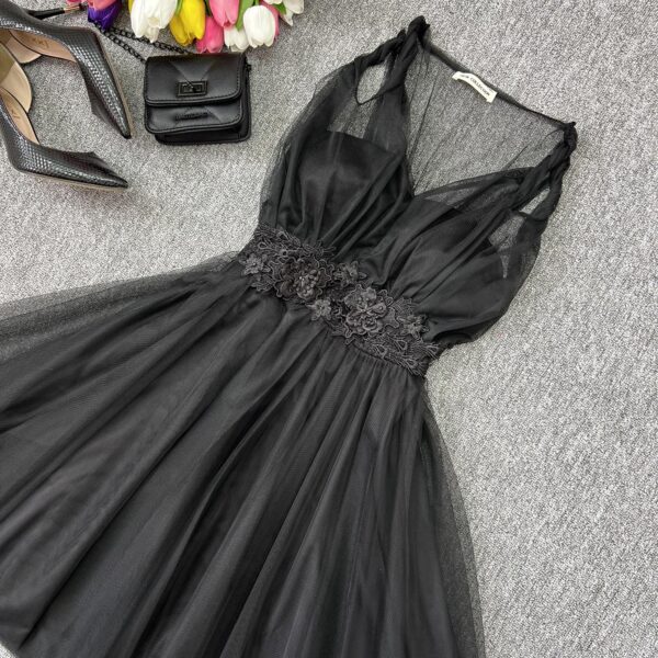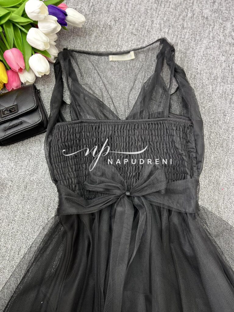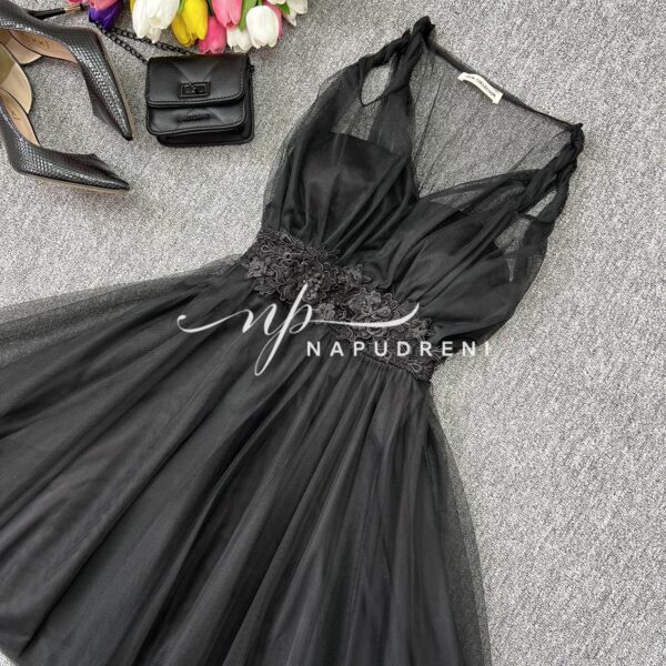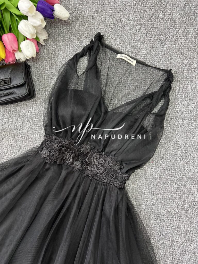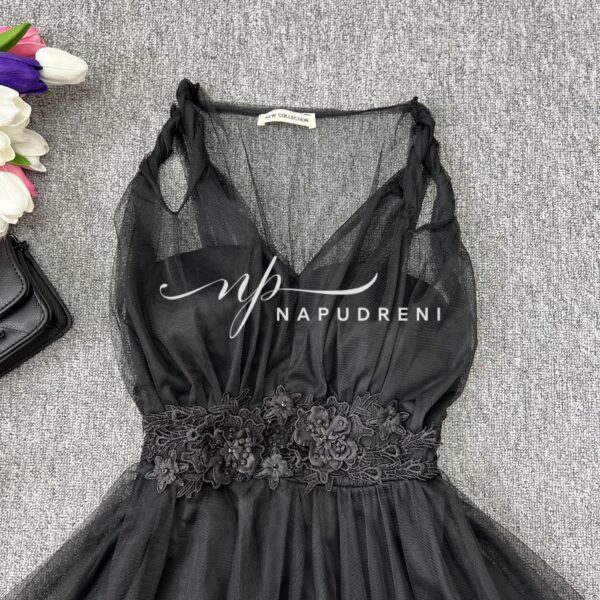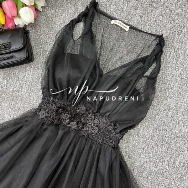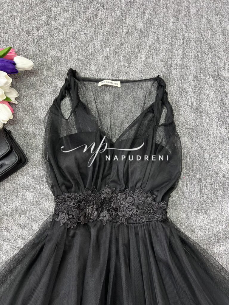 Дамска рокля с тюл и дантела в черен цвят – код 7031