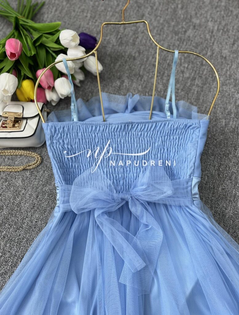 • Кокетна дамска рокля с тюл в светлосин цвят  - код 7026
