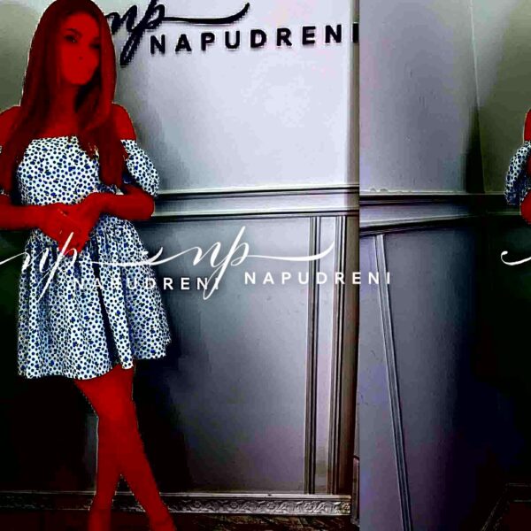 Кокетна рокля “AMARA“ в бял цвят със сини боровинки – код 9138