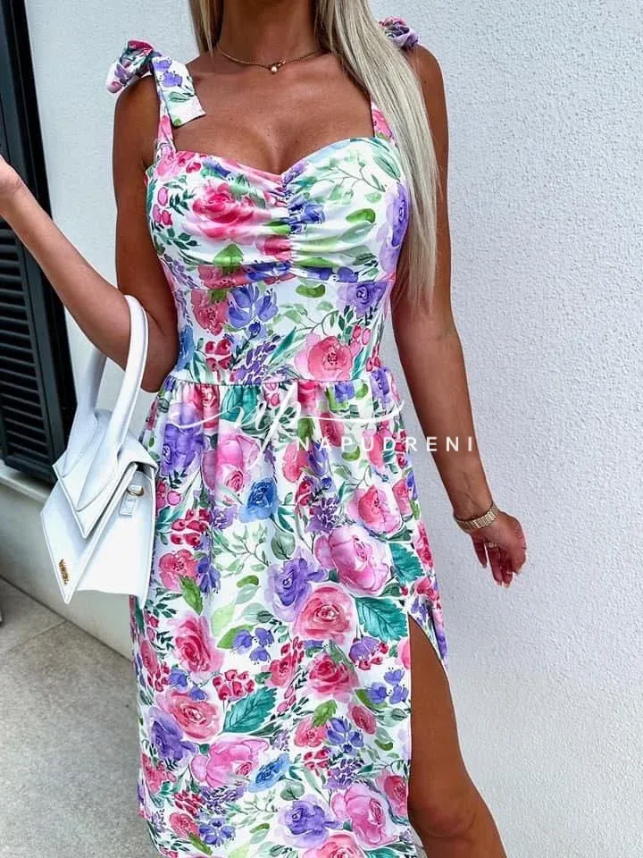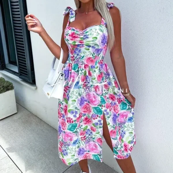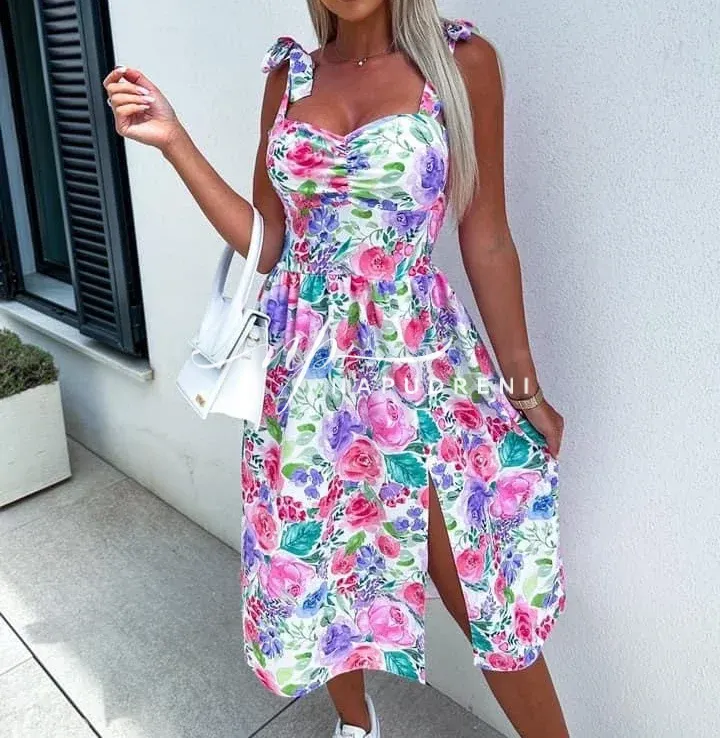Кокетна рокля със свежи пролетни цветя – код 5037