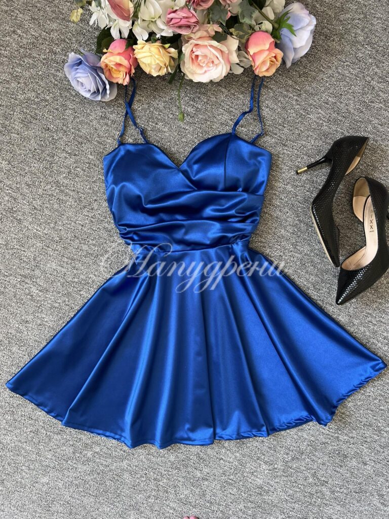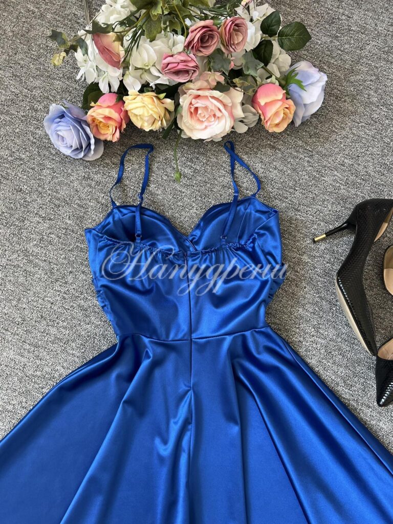 Кукленска рокля сатен „Ksenia“ в тъмносин цвят – код 5656