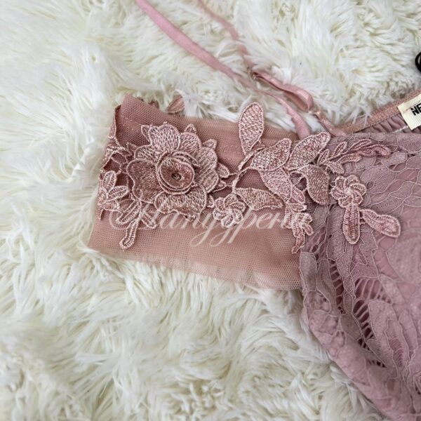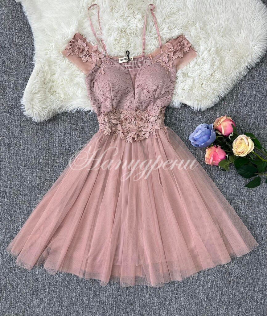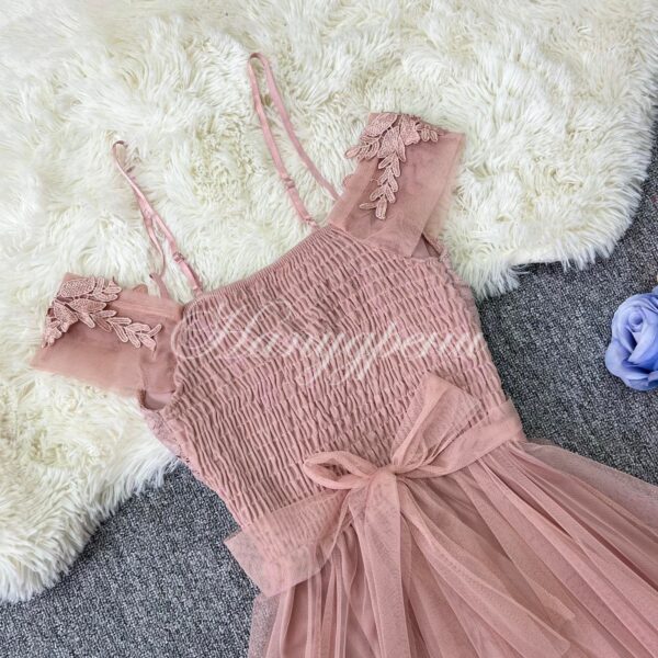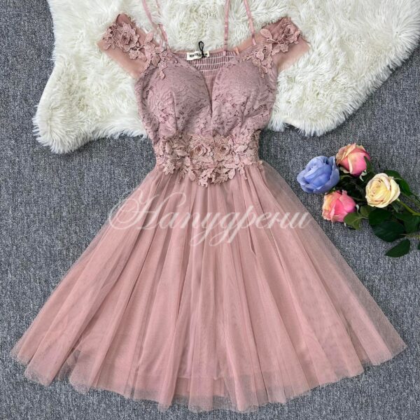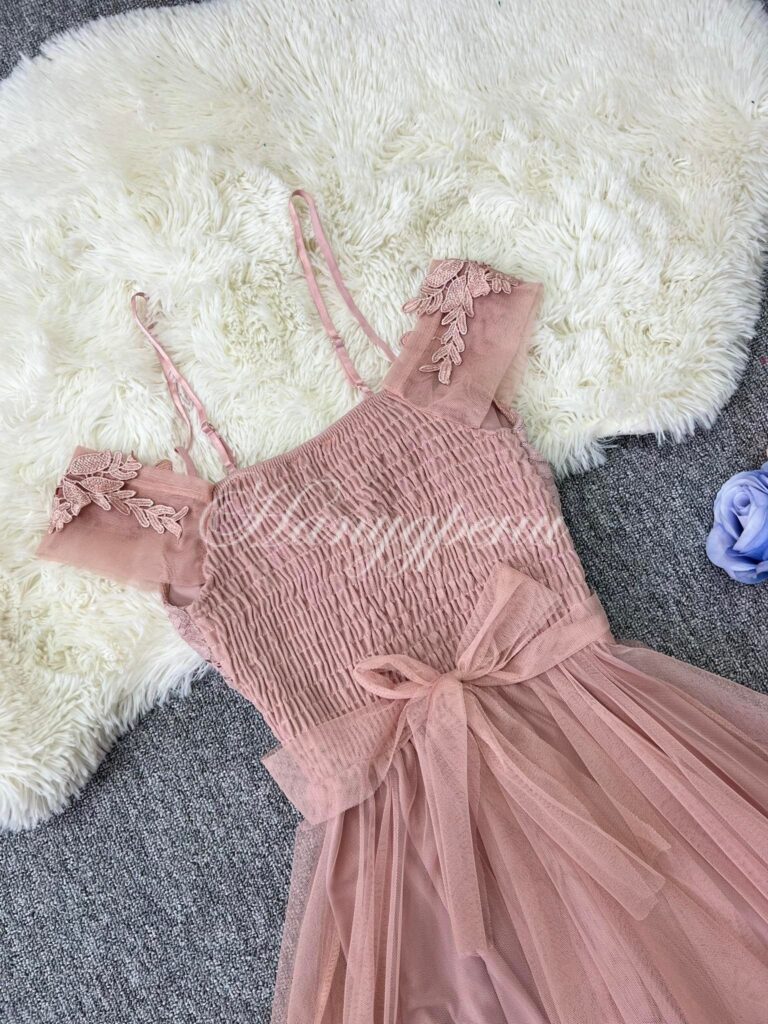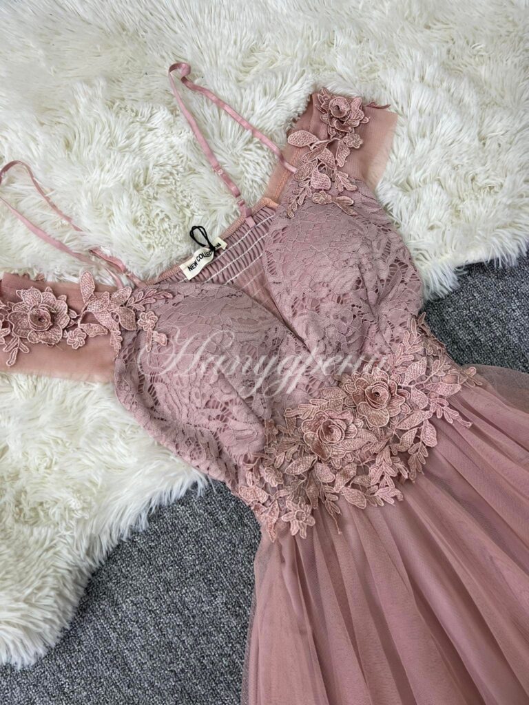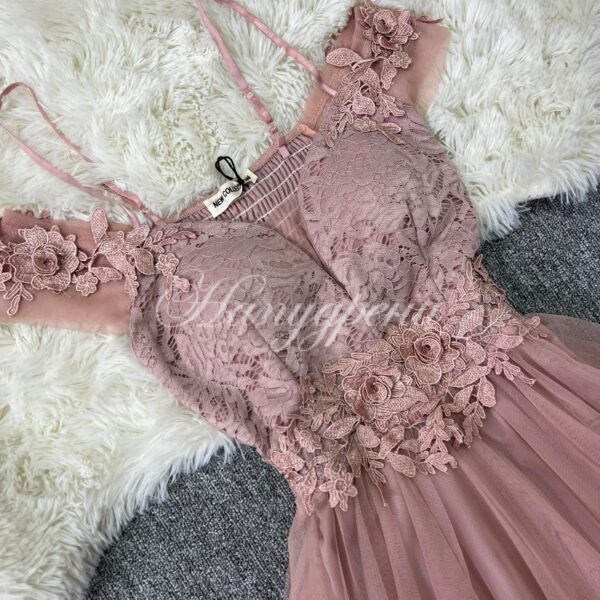Официална рокля с дантела и тюл в цвят пудра – код 5103
