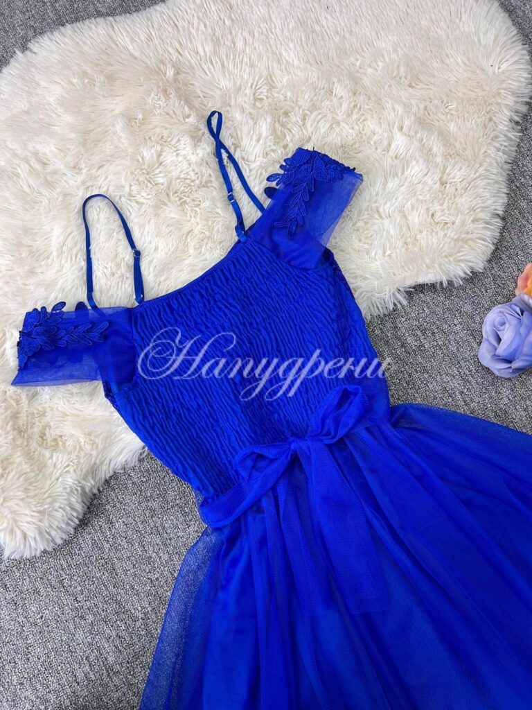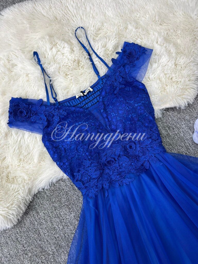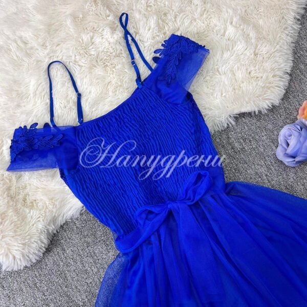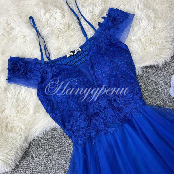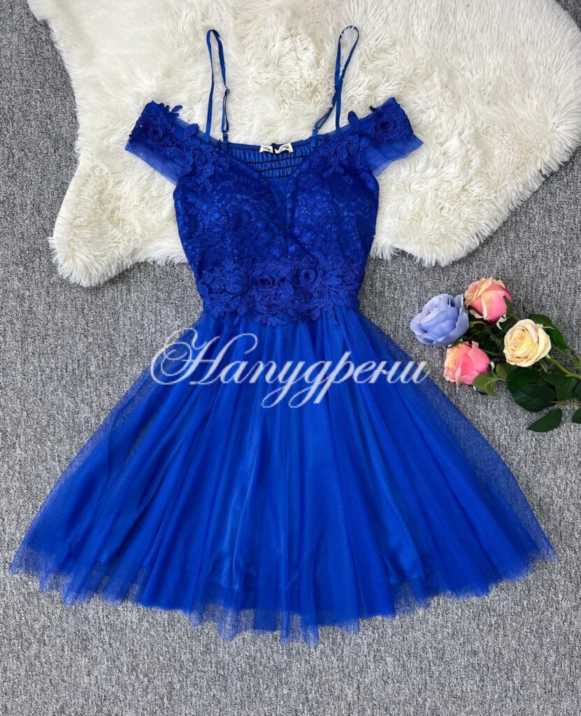 • Официална рокля с дантела и тюл в син цвят – код 5104