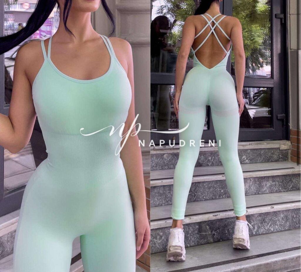 Home » Магазин » Оформящ гащеризон с тънки презрамки в цвят мента – код 9195