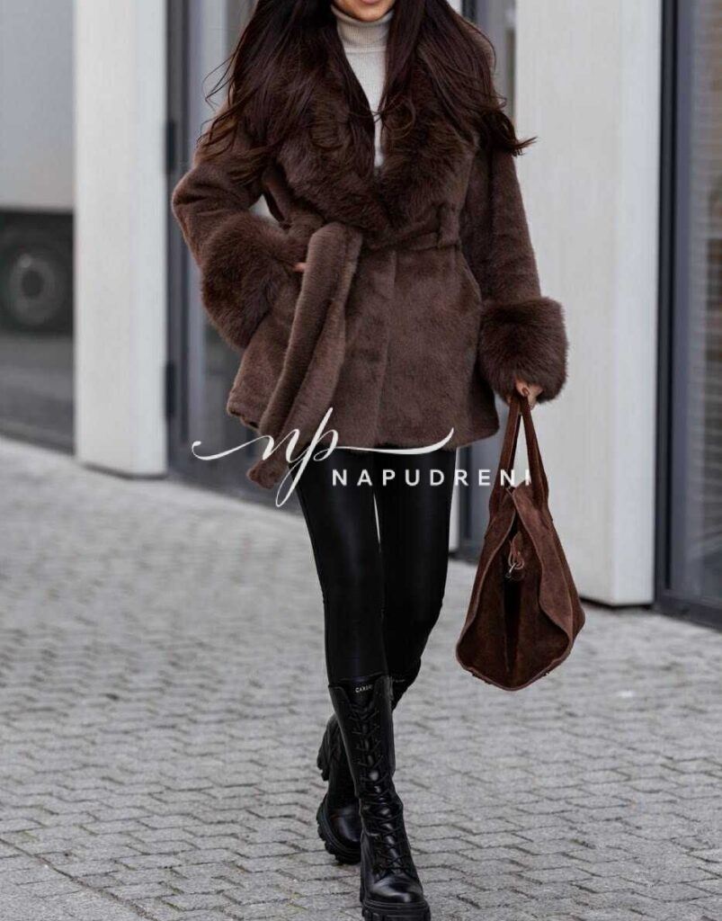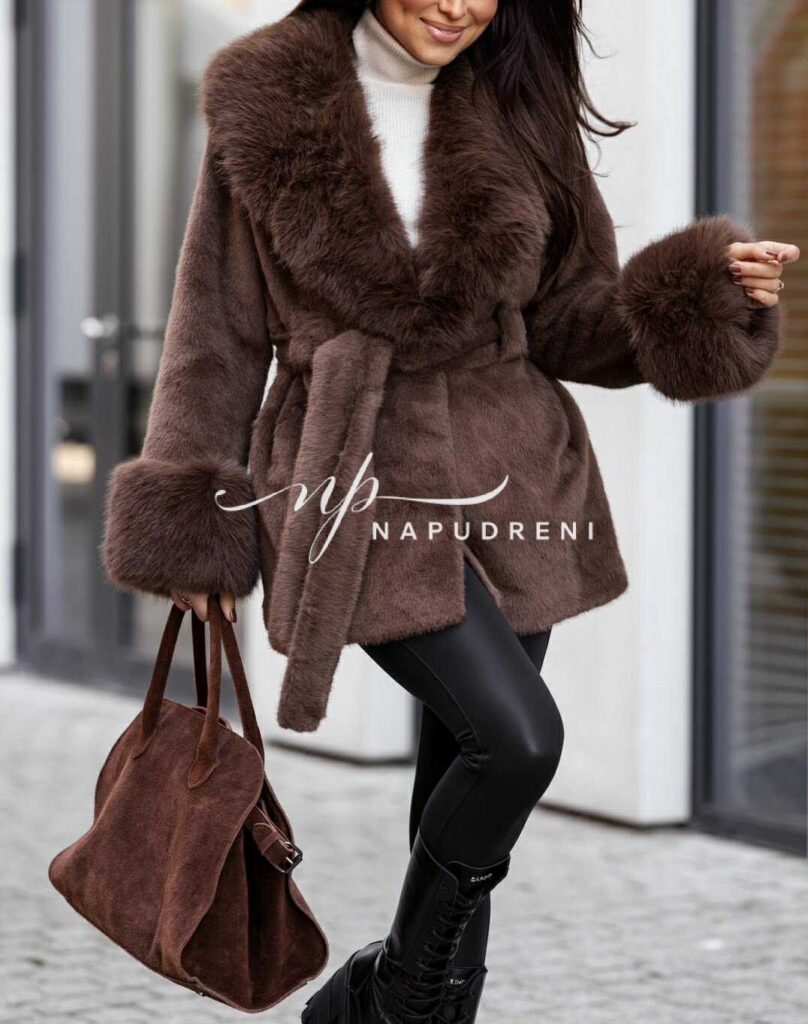 Палто „Urban Winter“ с колан в кафяв цвят – код G9998