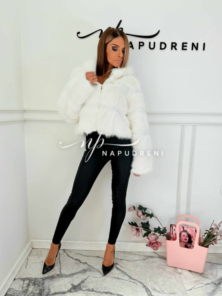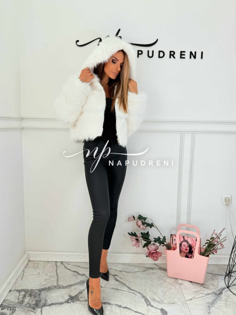 Пухено палто с качулка “CHRISTIYAN“ в бял цвят – код BL9844