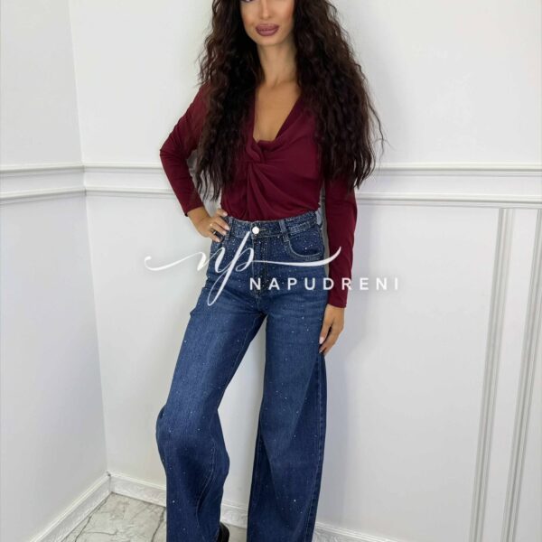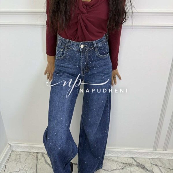 Разкроени дънки с камъчета в тъмносин цвят – G9829