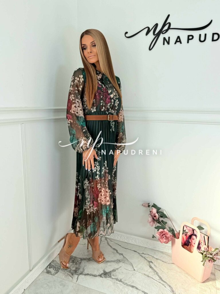Рокля плисе “RIVELA“ в зелен цвят – код Bi9872